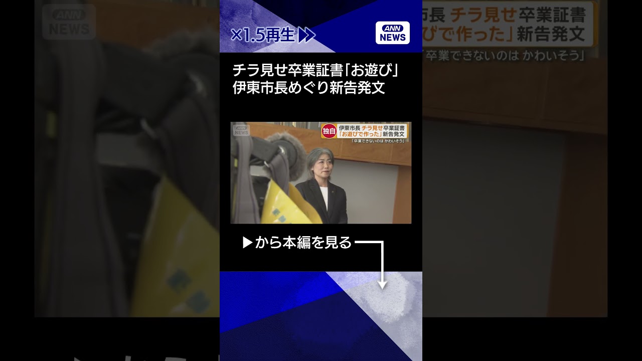 【ニュース】「お遊びで作った」新告発文 静岡・伊東市長のチラ見せ卒業証書 匿名の手紙が届く #shorts