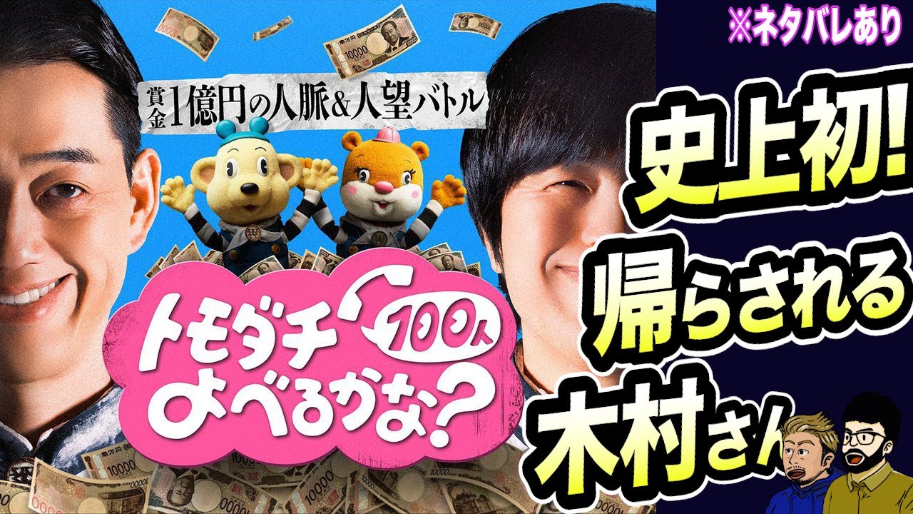 今回扱う作品は友達 100人呼べるかなです よ。あ、マジか。これやんのか。 はい。ということで、え、今回は映画でもドラマでもありません。バラエティ番組をやります。 いいの?いいのか?ムービーナイトだからいいのか?別に 動画であればいいです。 動画であれば何でもいいんだね。 動画である。あと結構一応あのチャンネルの上にあの一応配信番組語りますって言ってるから配信番組なんで あ、なるほどなるほど。 いいかなと。ま、結構普通に劇場映画とかもガンガンやってますが 確かに。じゃ、劇場映画の方が本来んだ。 本来はね。本来の立ち上げコンセプトからで 確かにいつの間にか映画館に行くようになったもんな。 え、ちょっと説明すると、Amazon プライムビデオで、え、 8月の1日に配信されました、え、友達 100 人呼べるかなという日本の、え、配信限定のバラエティ番組ということになります。アマプラ限定なんだね。 天マプラ限定ですね。 はい。はい。はい。 え、だからMC がバナナマンのしタらさんとバカリズムさんの 2 人で概要はそこまできますけど友達を何人呼べるかなみたいなゲームという概要ですね。うん。うん。 [音楽] はい、ということで早速僕らも、え、全部 6話ね、6話6 回に分かれ、分けられて配信されてますけど いや、一気見してきましたよ。 一気に配信されたので、もう見ました。え、先にちょっと結構ネタバレがやっぱりある、ある。ネタバレってかね、仕掛けは一応ある番組なんで、そこに触れずに最初、ま、お互いのどう面白かったかっていうのをこう [音楽] ネタバレ本当にしないようにってことだよね。 そうです。そうです。 ま、あの、後半、後半とこの後すぐネタバレありで喋りますけど、まずはネタバレなしで短く感想を言いやっていきましょう。沢さんいかがだったでしょう? はい。企画とか設定は面白いけど はい。 ま、すごい面白い。 え、けどちょっと長い。 全6 話でね。だから大体微妙に差りますけど、だから 450分ぐらいですかね、平均で多分。 うん。そうね。 長いっていうと、まあ、だ、企画設定の部分で話するとやっぱり、え、民法地上波ではできないことをやっぱやんないといけない と思うんです。やっぱアマプラとか、ま、ネト振りでもバラエティやったりするけど、 ま、そのスケール感はすっごいワクワクするよね、やっぱり。 うん。 ま、要するに友達をたくさん呼んだもんがちで うん。ていう、ま、半分ドッキリみたいな うん。 のに来てくれる友達、タレントの友達が何人いるかみたいな勝負をして うん。うん。で、一応1億円優勝した 最初はそうですね。 そう、そう、そう。ていうスケールで始まってそれに心憑性があるのはやっぱフジテレビとかそれじゃ 1億円は出せないからはいはいはいうん。 やっぱ配信番組ならではだしそれを感じ取ってみんな来てるんだなっていうのはちょっと分かるのよ。 はいはいはい。 もうドキュメンタルとかそういうのをやってきてる時代だからタレントさんが集まった時にさ、こうカメラの数とかがもうすごいっていうので分かってうん。うん。うん。 もうタレントやってりゃ分かるんだろうけどあ それうん。 それですげえスケールなんだなっていうところでこっちもテンション上がるし参加してるその MC及びチームのリーダーの 3人 うん うん と呼ばれた人たちみんなこれは結構なんかビッグマネ動いてるぞ感がずっとある あそう うん なんか俺はあんま分かってない人もいるのかなみたいな俺はちょっとそこは半々からぐらいたけどねまだからまず多分皆さんあの皆さんてかみんな思うのはあれこれ 水ダウ系かなって思って呼ばれてると思うんだろう。 ま、だから簡単に言うと水でやってるような 企画ではあるよね。似てるもんで。 そう、そう、そう。 のスケールでかい感じで 確かに これは結構積極的に、え、番組に参加してった方がいいぞみたいな空気が流れるわけですよ。 [笑い] ああ。まあ、多分感じ取ってるでしょう。 そう、そう、そう、そう。 すごい人たちもいるし後で話すけど呼ばれていったらすげ人たちいたりとかセットがすごかったりとかで うん。 ていうその企画設定の部分うまく使ってそのスケールの大きさをね うん。 で、こうタレントさんたちが結構豪華な出演者ですよ。タレントさんたちがこう色めき立ってる感じとかは序盤戦はもう見ててワクワクっていうかだんだんこうエンジンかかってくる。ま、エピソード 2とか3 ぐらいエンジンかかってくるんだけど、その辺まではすごい楽しかったかな。 うん。そうね。 うん。ま、明らかな、ま、後ありますけど、ま、ピークは 1個あってって感じはしますね。 そうね。そうね。 で、ま、長いっていう部分に関しては、あの、もうちょっと短くできんじゃないっていうのシンプルな うん。 うん。 さ、正直な話言うと最後の方も結果だけ知りたいなと思って。これ 6話が最 うん。4話、5 話ぐらいのタイミングでもう早送りして6 