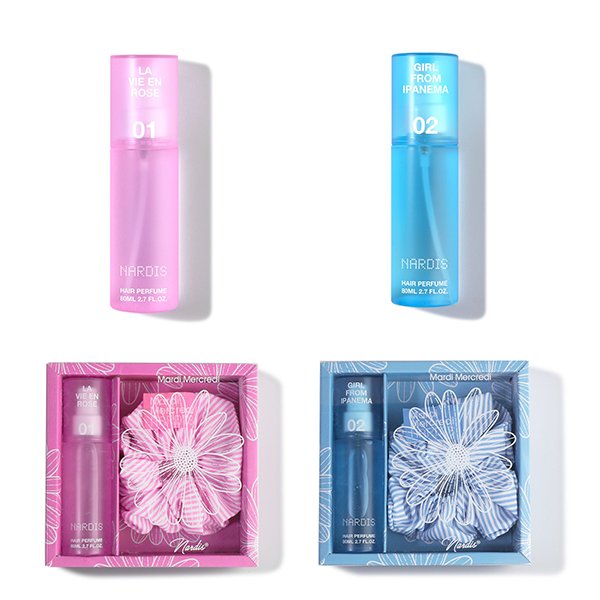 「Nardis パフュームヘアミスト」にオリジナルタグ付きのシュシュ1個がセットになった、Mardi Mercrediとの限定コラボセット「Nardis パフュームヘアミスト マルディメルクレディ セット」(税込3300円)も発売されます。
