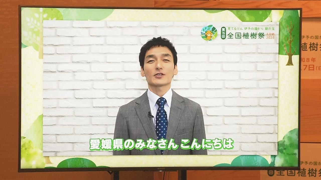 来年愛媛で60 年ぶりに開催される全国食事祭の進行役を愛媛の俳優草強さんが務めることが発表されました。 オール愛媛で愛媛の豊かな森林を守り自世代についでいくための決意を発信し皆さんの心に残るような素晴らしい点にしたいと考えておりますので是非期待していただきたいと思います。 中村知事は来年県総合運動公園をメイン会場として行われる全国食事祭の開催日が 5月17 日日曜日に決定したと発表しました。 決定し60 年ぶりの圏内開催となる全国食事祭は緑豊かな国土作りを目指して毎年開かれていて天皇合両陛下が視察を兼ねて全国を訪問する 4大業行系と呼ばれる室行事の 1つです。 また記念 式店のキャストも発表され、総合司会を大寿市出身のフリーアナウンサー内さんが メインベントなどの進行役を生まれてから 2 歳まで今張市に住んでいた俳優草強さんが務めます。 愛媛県の皆さんこんにちは。草です。 全国食事祭を通じて美しい自然を守り次世代についでいくための決意を全国に発信したいと思っております。 明日の 県は記念式店に参加する一般招待者も県民から募集する予定で詳細な交房内容は秋に発表するということです。