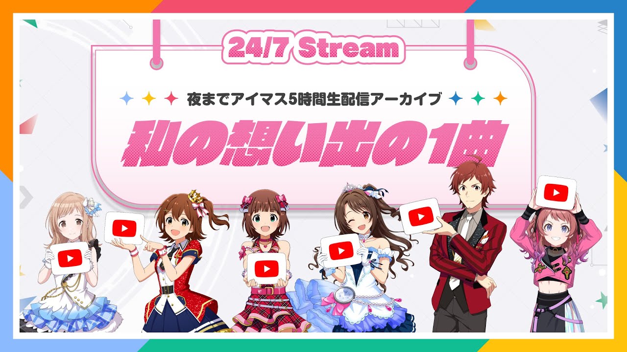 2025年7月26日に実施した、「夜までアイマス5時間生配信」内でご紹介した「私の想い出の1曲」をまとめて24/7Stream形式でお届けします!