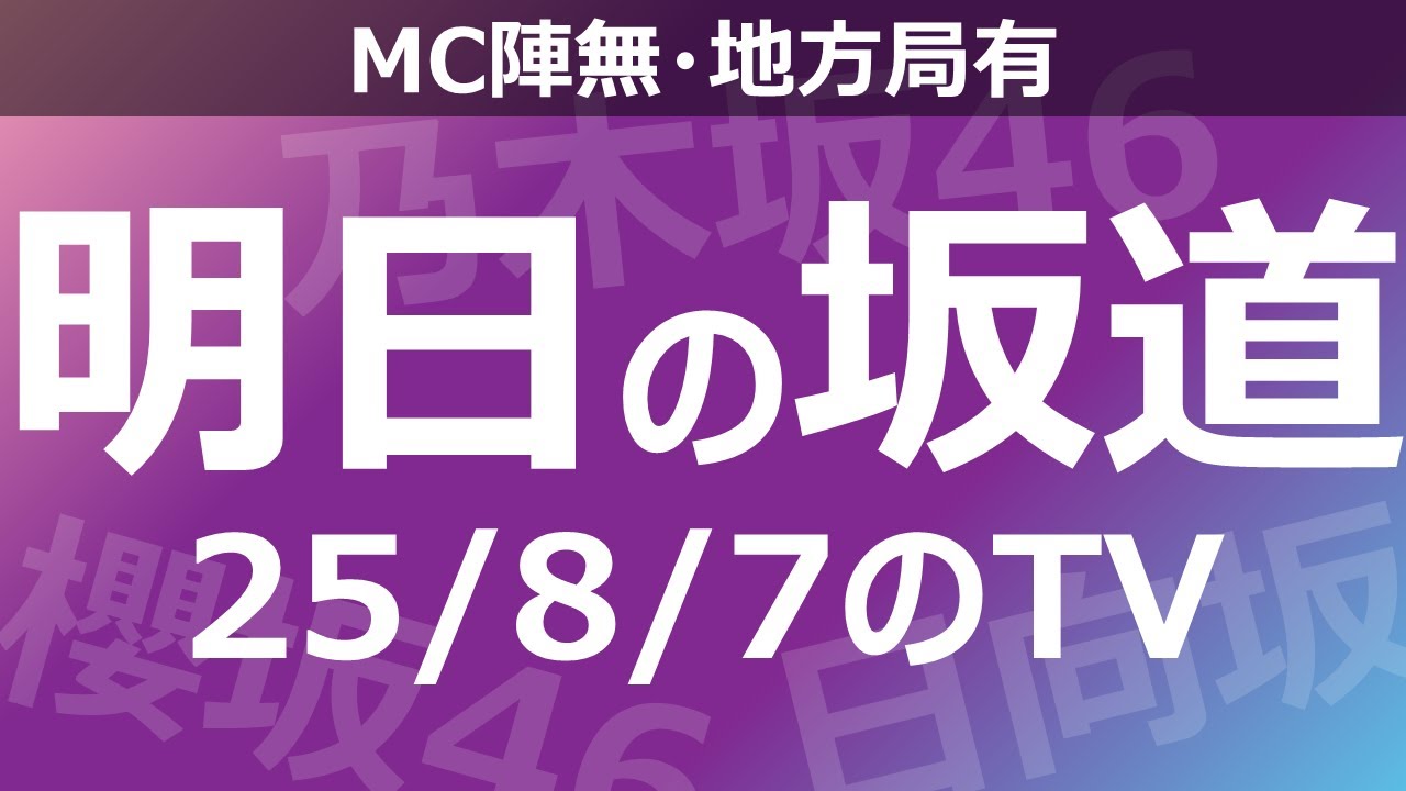 【明日の坂道】【全国】乃木坂櫻坂日向坂出演情報 2025/08/07 【番組出演】