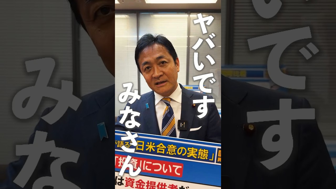 やばいですよ、皆さん。今日本はアメリカ にとって銀行だと思われてます。今日予算 委員会があって、え、まさか銀行じゃない なと思って聞いてみたんですけど、なんと 日本は銀行だと大臣が認めました。ここに ね、ラトニック商務長官発言があるんです けど、テレビでの発言ですけど、今回日米 の貿易協議完税交渉をやってですね、完税 を、ま、15%にしてもらう代わりに 5500億ドル、日本円で言うと80兆円 以上のですね、投資をするということが 決まったんですが、色々説明がありました けども、どこにプロジェクトを投資するの か、その選択も決定も実行もですね、全部 アメリカ権限持っていて、要は日本は金 だけ出せということで、日本は銀行だと いう風にラトニックさん言ってんですが、 まさこんなことはないだろうと思って今日 聞いてみたら日本銀行だと大臣も認めたん でこれ大変なことなんででこういうことを やっておきながら自動車や自動車の部品に 稼い完税27.5%はまだいつ下がるか 分からないという状況なんで大変問題の ある、え、交渉内容だということが分かり ましたのでこれはですね厳しく追求して いかなければいけないと思いますのでまだ 交渉終わってません。え、我々国民民主党 としてはですね、国益を守るために厳しく 石政権追求していきたいと思います。