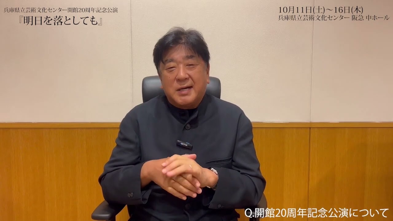 兵庫県立芸術文化センター芸術監督の佐豊 です。え、この秋芸術文化センターの プロデュースで、え、阪神淡路大震災を テーマとする演劇公演明日を落としてもが 上映されます。阪神淡路大震災から心の 復興、文化の復興のシンボルとして 2005年に会館した芸文センターは今年 で20周年を迎えます。え、そして阪神は 時代震災から30年の節目となる、え、 今年の1月17日、え、このゲーム センターでは兵庫芸術文化センター還元学 の演奏で、え、マーラーの公共局第8番、 え、1000人の公共局と言われる、え、 すごく壮大な、え、シンフォニーを演奏し ました。え、 ま、30年この、ま、多くの犠牲者を出し たことへの祈りと、え、そして30年この 頑張ってきたこの半神の人たちを称える つもりで、え、この壮大な高級局を演奏し ました。え、またあのこの演奏会では、え 、大友義秀さんという、え、NHKの 朝ドラで、え、天ちゃんっていうのがあり ましたけど、あのテーマソングを作った、 え、ま、あのテーマソングはもう誰が聞い ても元気になる、え、音楽なわけですけど も、え、あの、大友さんに、え、 空と未来という曲を移植しました。え、 それをマーラーの前に演奏したわけです けど、え、1学がレクイエム、ま、ち婚局 ですね。え、そして2学はもう本当に即興 演奏。え、それで、え、今を感じる。え、 で、山岳賞は未来に向かっていくお祭りの 音楽というのを作っていただき、え、ま、 祈りとそして、え、この半神の人たちが ラシの希望を感じれるような、え、そんな 思いを、え、込めて演出いたしました。え 、そして演劇でも今回会館20周年記念 講演として神戸を舞隊にした震災を題在と する作品を上映することはこの震災を風化 させないためにも本当に意義深いことだと 思っています。え、演出の栗山也さんは 会館前からこのゲームセンターとのご縁が あり、え、今回演出を手かけていただく こととても嬉しく思います。え、僕はあの 俳優の大竹ぶさんとすごく仲がいいんです けど、え、ま、元々あのピアフのね、あの 舞台で僕はしぶさんと出会うわけですけど 、ま、それも栗山、え、栗山さんの演出で 、え、ま、何作品かやっぱり栗山演出を、 え、見てきました。え、ま、すごく シリアスな内容の中にとってもユモアも あったりして、え、すごくこう舞台が生き している、え、そんなステージを作られる 方だなと、あの、ずっと思っていました。 えー、また先日ですね、あの、佐藤太さん もゲムセンターに来られてお会いすること ができました。ま、僕は彼の、ま、テレビ であるとか、もちろんあの、映画も、え、 何作品費も見てますし、え、ま、テレビの 中の人があの、会いに来てくれたっていう 、あの、すごく爽やかな、え、人でですね 。え、今回この、ま、主人公としてこの 舞台を作出ていただくっていうのを、え、 とってもあの、嬉しく思っています。え、 いつもゲ文センターを応援してくださって いる方々はもちろんですけど、え、今回ア 25チケットも販売されますので、え、ま 、震災を知らない若い世代の方々にも是非 このお芝居をご覧いただきたいと思ってい ます。え、是非親子で、え、ご家族で見て いただけたら嬉しいです。 え、立ち上がる勇気と未来へ踏み出す新たな一歩を描くを落としても、え、僕もとっても楽しみにしています。皆様のお越しをお待ちしています。