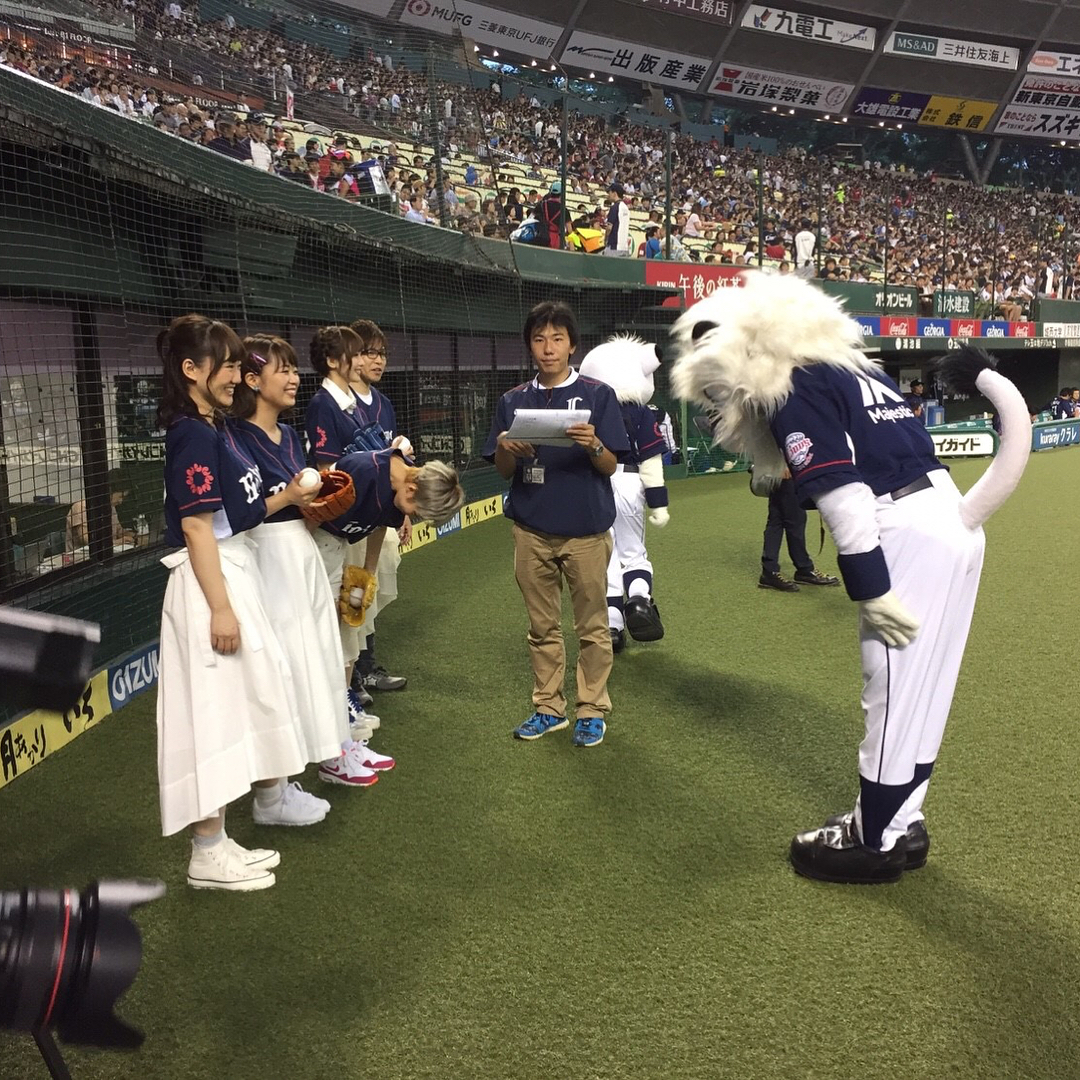 いよいよ始球式‼︎ 緊張‼︎ ……というタイミングで、レオくんが和ませてくれました💓 髪の毛おんなじだって! ありがとうレオくん💕 でもレオくんのがフサフサだよ(笑)。 ちゃんとお辞儀して終わる……コントか(笑)! #埼玉西武ライオンズ #メットライフドーム #始球式 #レオ #マスコットキャラクター #おそろ髪 #たてがみ ? #フサフサ #平野綾 #aya_hiranoAya HiranoHirano Ayaおそろ髪たてがみフサフサマスコットキャラクターメットライフドームれお埼玉西武ライオンズ始球式平野綾