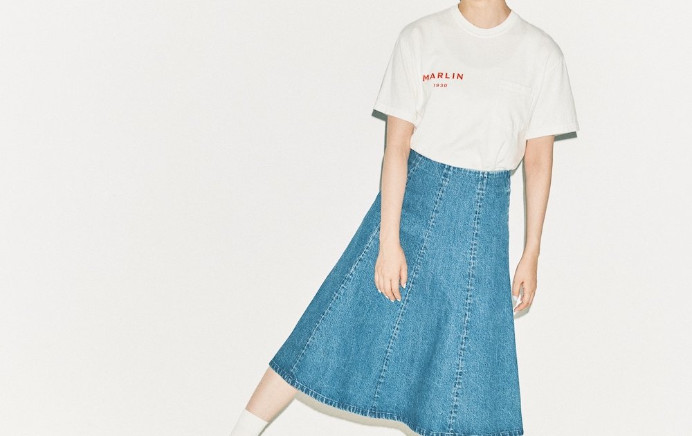 デニムパンツの着こなしにマンネリ気味なら「デニムスカート」はいかが?フレアなシルエットなら、ラフなTシャツでも自然とレディな仕上がりに。頭にスカーフを巻いて、大人なエッセンスも忘れずに。足元はスニーカーにすることで、良い塩梅のコーディネートになるのです。