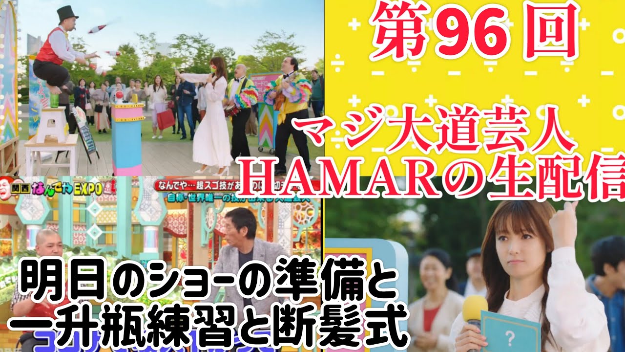 第96回 マジ大道芸人HAMAR 子供向けパフォーマー(宇治市民) の生配信!明日のショーの準備と一升瓶練習と断髪式!23:30まで!