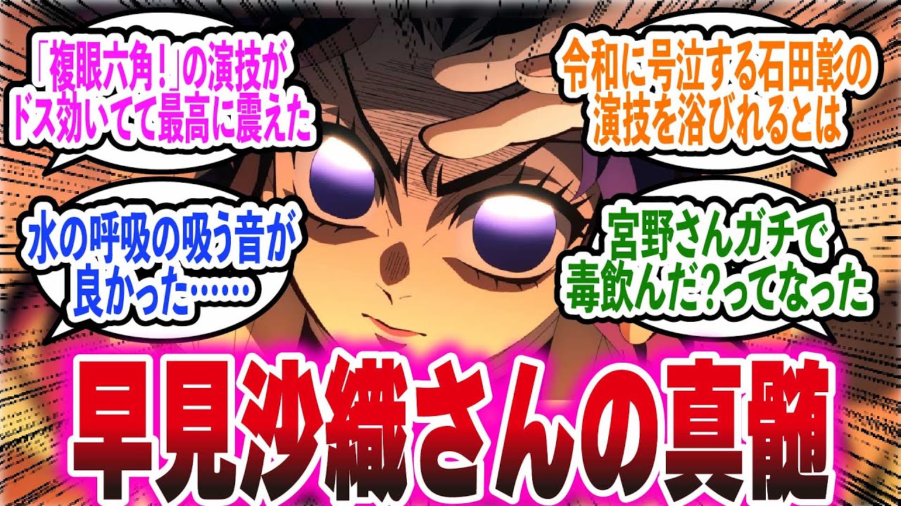 映画無限上編で震えた声優さんの演技を上げていくすれのまとめです。それではどうぞ。はさおりさんの親髄を見たね。 セリフはう覚えだけどしのぶさんの辛いも何もあるものか羽織りに見覚えはないかのところつもの優しい声と全然違っててしのぶさんの怒りがよく伝わってきた。はみさんあんな声も出すんだと思った。 [音楽] 胡蝶さんの演技は今回すごすぎた。あの下打ちのリアル感すごかったわ。な んで毒聞かないのよ。 バカ野郎の悔しさ全開の声。 しぶさんは複眼角の演技がどス聞いてて最高に震えた。最後の力で仕留めてやるっていう迫力があったからこそ毒が効いてない無常が悲しくてまた良いんだ。 あみさんふわふわのイメージ強かったからマジでこんな声も出す人なんだってびっくりした。めっちゃ良かった。 会を切られてゴロゴロなってる声すごかったな。どうやってあんな音出してるんだろう。 ずっとずっと怒ってますよ。 ずっとずっとのずっとの部分を映画見るまでワントーン高くなる感じで想像してたんだけど実際は低くなってて良い意味で予想を裏切られた。すげえよ。マジで自分が想像して頼りがち切れ感しましで 姫島さんいいな。イマジナリーか苗さんが出てきてからのしぶさんの妹声がすごすぎてビった。それまでの復讐に燃える女性から一転してお姉ちゃんに甘える妹になった。 勝てないが完全にお姉ちゃんに抱っこで起こしてもらおうとしてる声してた。 花えさんの関係ありません。立ちなさい。虫柱こし忍ぶのりしさと切りしさの中にある優しさみたいな表現すごい。 ミやの守さんのあのもう作ったかのようなわざとらしい演技すごいよね。どうってキャラクターをめちゃくちゃ表してる。なおかつ不自然じゃないギリギリ。本当器用だよな。この人うるさいけど。 [音楽] 宮野さんガちで毒飲んだってなった。 あんなに苦しそうなのに啓差を失ってないのがすごい。 宮野さん表面上はこりゃ教祖様ってすがりつく人も出るわ。って思うような優しい美性でなのに何の感情も込められてないのがはっきり分かる不気味な話し方なの。動魔の改造だかすぎんてなった。分かりやすいキモい演技じゃなくて本当に全意で振るまってる虚だからこの尺に触る感じ。 いい夜だね。画回とも言い方違ってやばい。 童魔の空っぽの虚から競争モ動 2 モードに変わる怖色の変化。虚部分がガチで虚で薄ら寒くなる感じすげえ。 水の呼吸の吸音が良かった。 富岡さんの息を拍し何回かあったけど良かった。戦闘に集中してるてだれみがあった。 風呂覚えだからセリフ違ったらごめん。振り下ろす刃を殴り寄った。望全感すごかった。 バトル後半例えばしず派門つ月とか腹から出てる感じが良かった。 炭治郎に救われたのところ言い方がなんか独特で印象に残ってる。感謝とも驚きとも言いきれないような何が起こってるか把握しきれてない声。 [音楽] なんだかんだ桜井高弘すげえってなった。背中が痛いとか喋るのが嫌いみたいなちょっとずれた発言から炭治郎を殺したくばまず俺を倒せのかっこいいセリフに戦闘中の息き遣いに混じったわずかな感とか改めて表現の幅がやばい。 白じさんの少年時代ボイスマジですごいなと思った。いや、演技力もそうなんだけど声が若い。あなたはまだそんな声出せるんだ。ってなったよ。 列車編で声優発表された時にも言われてたけど石田明は絶対過去編から略散してのキャスティングだよね。 ゴツ少年白事敬少年白事青年白事の演じ分けすげえ声の若さと心情の変化が声にめちゃくちゃ出てた。 モノローグが赤里白士さんで互くて終盤シームレスに行ったり来たりしてるのがすごかった。 白自の人に対するモノローグ何回い意味で淡々と言うから本当に心の底からそう思ってるって感じがした。 来年も花火は上がるからその時行けばいいですよの言い方が本当に気遣いとか出ないのが伝わるぶっキラボな言い方で最高だった。 細かいけど白の吐きそうだったの時の本当に吐きそうな声よかった。 弱いやつが嫌いだから始まって辛抱が足りない。 すぐ自亡時期になる。親父の遺言も守れないのところどんどん必叫びみたいになるから白事のそんな自分が嫌いだって伝わってきてすごい。 ごめん。守れなくてごめん。大事な時そばにいなくてごめん。約束を何ひつ守れなかった。許してくれ。俺を許してくれ。頼む。許してくれ。令和に号泣する石田明の演技を浴びれるとは思わなかった。 お帰りなさい。あなた。ただいま戻ったよ。ここでつも泣いてしまう。 小ゆさんのお帰りなさい。あなたのシーンの第 [音楽] 1 世の白じさんがあまりにも愛と優しさと慈しみに溢れた声でこっちも白士さんと同じ反応になった。 [音楽] 武山が介入して赤に戻るところ声が白事から赤さに変わったなって分かるわけ好き。 昨日ようやく見たけどとにかく全員すごかった。 でもやっぱり100 万回言われてるだろうがなんともまあ惨目で国形でつまらない話だは本当に漫画の