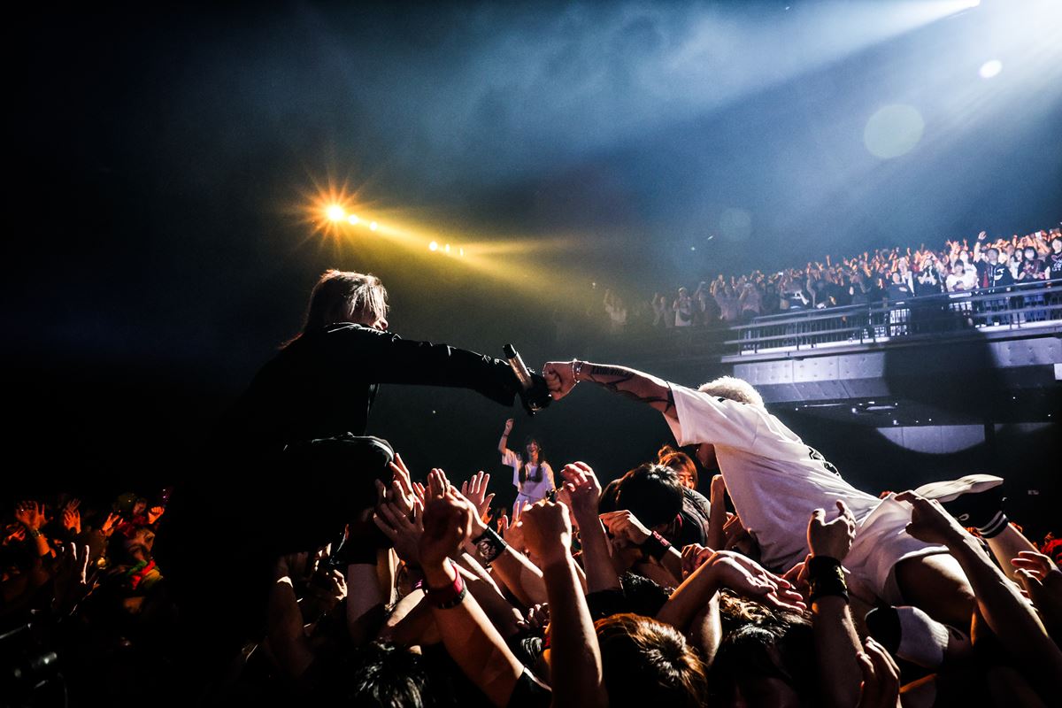 それにしてもなんと伸び伸びとしたフロアの盛り上がりだろう。リフトアップもクラウドサーフも、どちらのエリアでもひっきりなしだが、その違いは明確にわかる。HYDEが言っていた通り、エリア分けされたことで男性も女性もお互いにより遠慮なくそれぞれの本領を発揮、それが相乗し合って想像以上のパワーを生んだのかもしれない。男女の垣根のないカオティックな盛り上がりも捨てがたい魅力である一方、こうした試みによって拓かれる可能性もきっとある。ここにきてHYDEのライブはまたひとつ、新たな武器を手に入れたと言えそうだ。