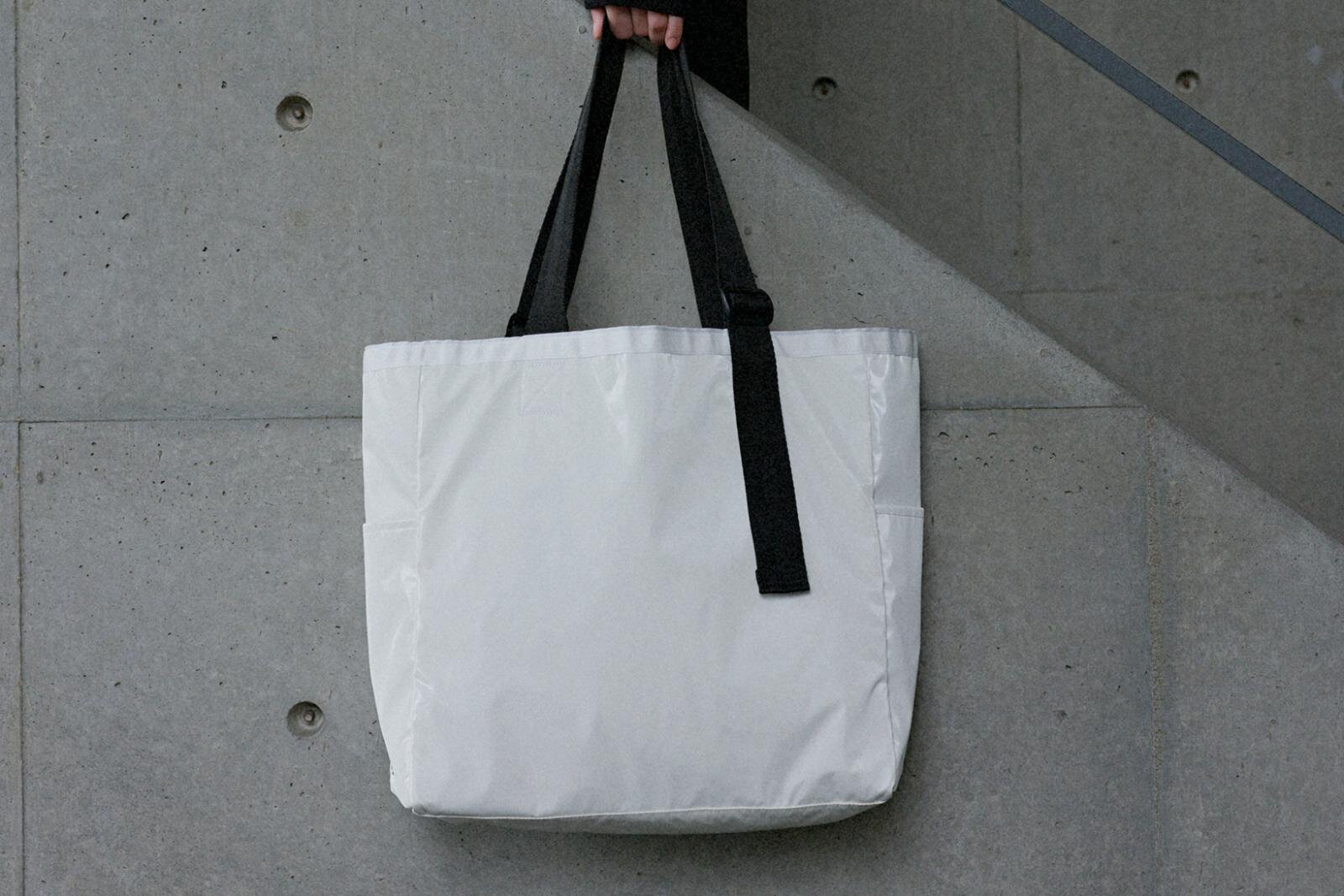 中でも注目は、大きめサイズのトートバッグ。ホワイトとブラックの裏表で楽しめるリバーシブル仕様で、仕切りのないシンプルな設計が特徴だ。また、ハンドルの長さを調整できるオリジナルの仕様をプラスし、使いやすさとデザイン性を両立。A4サイズやPCもゆったり収まるため、通勤や通学はもちろん、旅行用にもおすすめだ。
