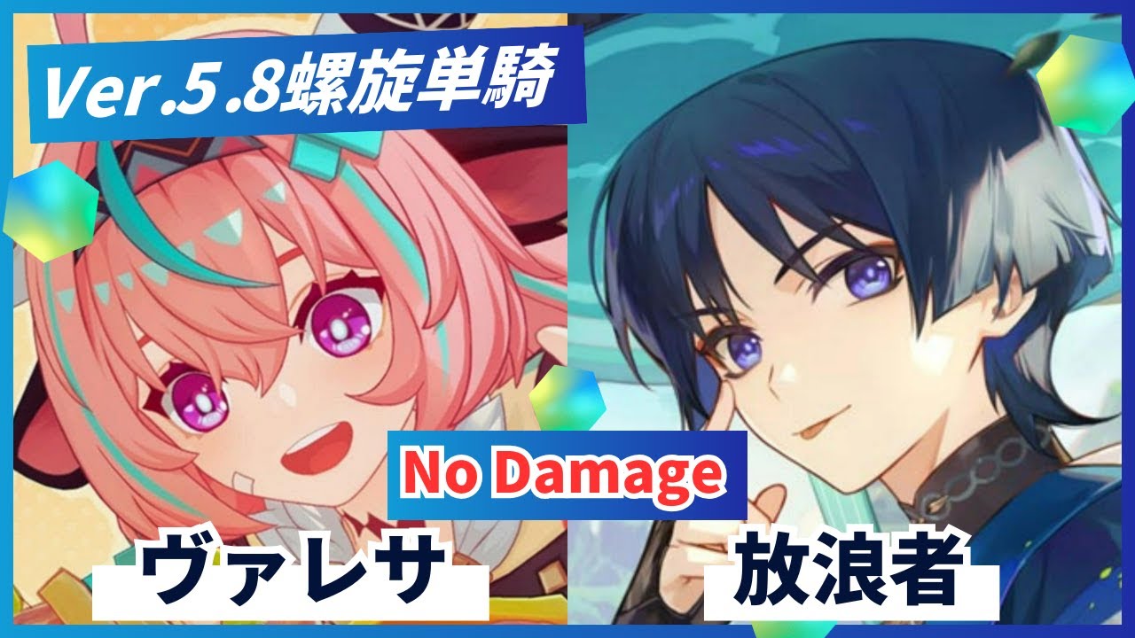 【原神】螺旋Ver.5.8 ヴァレサ&放浪者 両単騎☆9 ノーダメージ【げんしん】