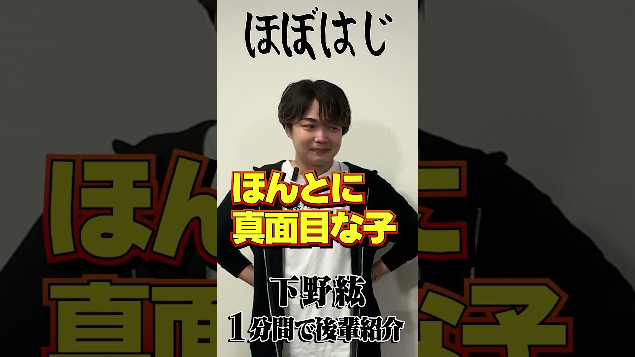 どうものひです。え、1 分間で私の後輩伊藤ゆき君を紹介していきたいなと思います。 よろしくお願いします。 はい。え、伊藤君はですね、え、勇気は一瞬公開は一生っていうぐらいですね、本当に、え、すごく真面目な子なんです。真面目な子がゆえにですね、え、自分の中で色々と、あ、今日やってしまったなっていうのをですね、え、飲み会が終わっても飲み会えで大丈夫だったよって言っても、いや、自分は全然ちょっともっと頑張るべきだったなっていう。 [音楽] なんのLINEでもいや、自分ちょっと もっと頑張るべきでしたみたいなこれから も頑張っていきたい行きたいですっていう ぐらいですね。本当に真面目な子ですね。 すごい一生懸命ですね。でもあの私がね こう色々とその服をですね、え、渡したり あげたりとか、え、そういう風にすると ですね、全力で喜んでくれて、え、そして ね、あの本当にその服好きだったんだろう なっていうぐらいですね。え、僕の目の前 でこうしさん来てきましたよっていう ぐらいですね。すごい素直ないい子です。 伊藤君、最後に一言どうぞ。 大好きです。下さん、 ありがとうございます。次回お楽しみに。 お楽しみに。