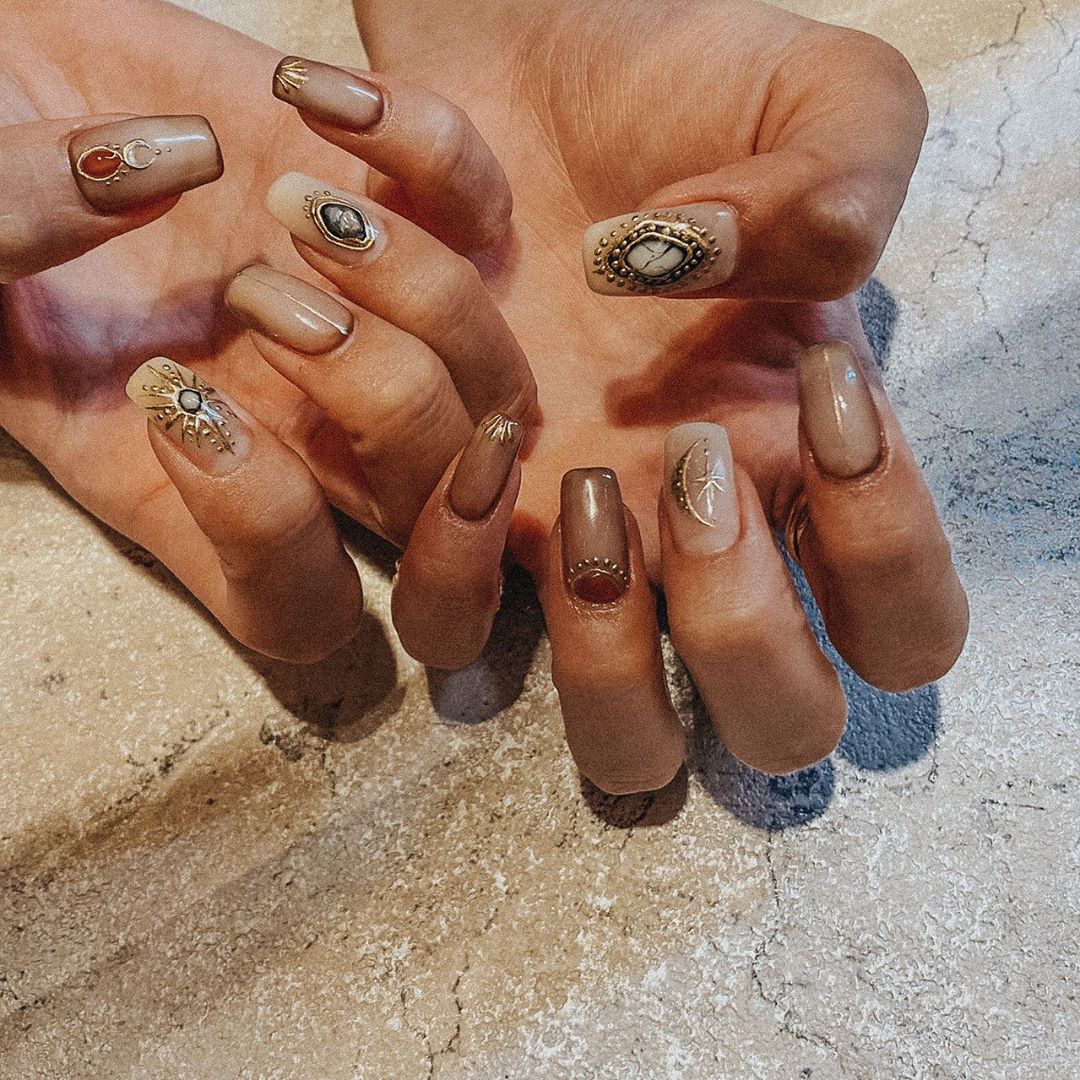 @池田美優: . おにゅう クリアだけど濃いブラウンで囲んだりして 秋っぽさをいれてもらいました︎ いつもより大人しめ…