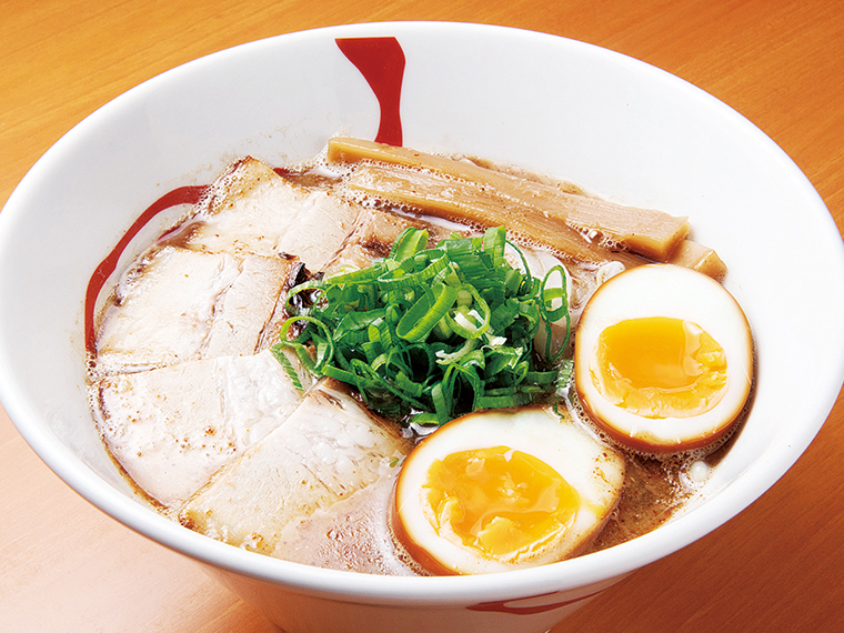 本格派のラーメンは、3種類の生じょうゆをブレンドした「しょうゆ」、沖縄の塩「シママース」を使った「しお」、豚骨とサバ節&ウルメ節のだしがたまらない「豚骨しょうゆ」など、素材にもこだわってます。いずれも、コシの強い自家製麺との相性は抜群。