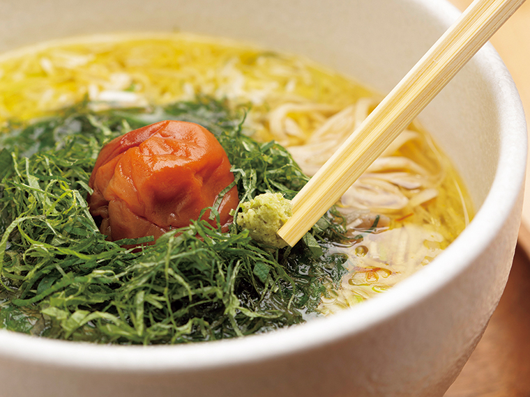 そのほか、小麦の味わいが引き立つ全粒粉の中細麺や、水菜や大葉にとろろ昆布といった和食ライクなトッピングもスープに相性抜群です。