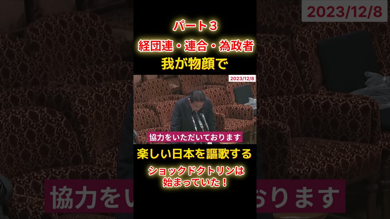 山本太郎の国会質問!参議院・予算委員会(2023年12月8日15:52頃~)の一部を引用しています。
