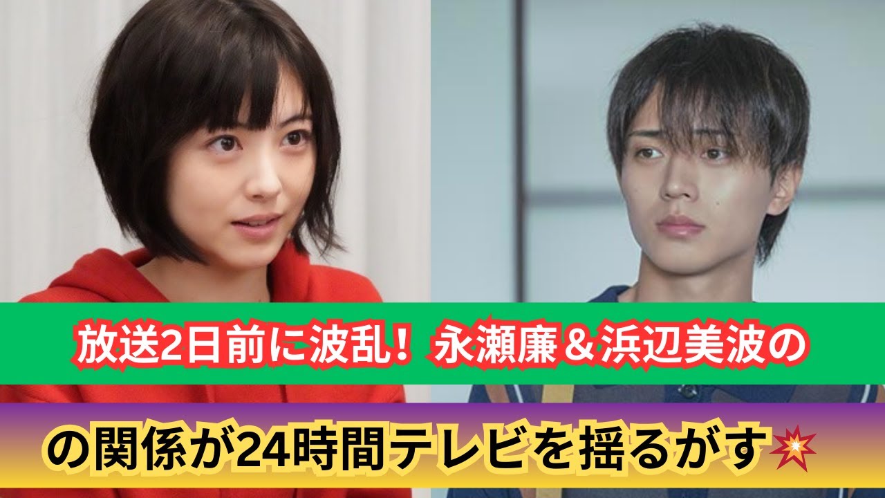 放送まであと2日となっている日本テレビ の夏の長型特板24時間テレビ8月30日 31日 各地で国書が続いておりチャリティ マラソンを走るスーパーA横山ゆさ44に は心配する声そしてマラソン自体に反対 する声も今だ上がっていますよね。そんな 中で今年の24時間テレビの制作スタッフ が気を揉んでいるのが例のカップルについ て。キング&プリンス長瀬さん26と浜辺 南さん24のことですね。バラエティ番組 制作会社関係者。今年の24時間テレビで は金ぷリと浜辺がチャリティパートナーを 務めるのだが、長瀬と浜辺が交際している ことが7月16日配信の女性の報道で 明らかに。長瀬と浜辺は7月上旬の夜都内 の高級鉄板焼店を貸し切りにして食事を 楽しみ、時間差で店から出てきた後に2人 で同じタクシーに乗りそのまま長瀬の自宅 マンションへと向かって浜辺はお泊まりを したという。同士が交際について 問い合わせたところ長瀬の事務所からは 回答がなかった。一方で浜辺の事務所はご 連絡いただきました件ですがお答えする ことはございません。 足からずご理解のよろしくお願いいたしますと交際を否定しなかった。に 7月24 日発売の週刊文春芸春獣が瀬戸浜辺は 24時間のファー前から交して 報道。仮にオファー前からしてるなら 24時間テレビ どちらかが断れよ。ファー前からの付き合いならなんでファー受けたのか。 浜辺南の事務所も報告聞いてたなら断れ 長瀬連もどうにか断るべきだろうとファン からは怒りの声が上がった。最初の熱愛 報道からある程度時間は経ちましたが未だ に一部のファンは厳しく見ているようです ね。お互い独身でトップタレント同士の 恋愛を応援する声が多いようですが、ただ 24時間テレビの制作サイドは数年通りに 何も気にせずに放送するのはまずいと考え ていると言います。特にスタッフが警戒し なければいけないと考えているのが長瀬 さんと浜辺さんが1つのワイプ内で一緒に 移ることだと言います。出演者が正揃い するオープニングやエンディングで同じ 画面に移るのは仕方がないでしょうが、 そうではないちょっとした企画やコーナー などで2人が近い距離感になり、同じ画角 やワイプ内に一緒に移り込むと、2人の ファンは敏感に反応するでしょうし、 SNSも荒れるでしょうからね。前室の 制作会社関係者。そういった事態を避ける ためにカメラワークの確認も入念に行われ ているようだ。熱愛報道が出た両者への 配慮なわけですが、ただでさえ24時間 テレビの準備は大変ですし、放送前から 疲労後配しているスタッフも少なくない。 放送直前には数日間寝ないで準備する スタッフもいますからね。オンエア中も 何か事故があってはいけない。時が休まら ない。そんな状況で例年にはない長瀬さん と浜辺さんをワイプ内に一緒に入れないと いうミッションまで発生することに。担当 のスタッフは放送直前の今かなり神経を 尖らせているでしょうし、テレビマンの間 でも今年の24時間のスタッフはあまりに も大変と同場する声が寄せられていますよ 。連動トップタレント同士の踊り自身恋愛 だが、両者が報道1ヶ月半後に共演する 今年の24時間テレビの制作スタッフは 大変な思いをしているようだ。7月29日 に24時間テレビのポスタービジュアルが 公開されたが、長瀬と浜辺南のTシャツの 色が同じだったことでSNSが荒れること に。え、Tシャツ同じ色とか来てんじゃん 。顔文字笑い何?アピってんの?顔文字 笑いファンに対してそれはなくない? もっとさあ、配慮とかできないわけ。 ちょっと考えればわかんないなど厳しい声 が上がった。