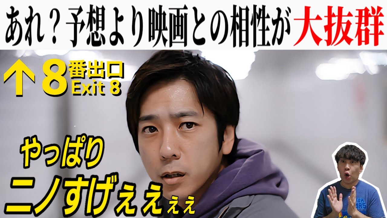 はい、どうも始まりました。スタンド バシネマチャンネルのです。よろしくお 願いします。はい、このチャンネルですね 、新旧問わず映画に関すること何でも絡ん でこう映画チャンネルでございまして、 今回新作映画レビューやってこうと思い ます。ちょっとね、ネタバに踏み込む可能 性もございますんで、絶対にネタバレ踏み たくないって方はね、ま、映画見終わって から見ていただくから、ま、それでもオッ ケーって方はね、是非見てください。で、 この動画の最後にはですね、僕個人の試観 ではございますが、この映画の採点もして ますんで、よかったらそこまで見てくださ いっていう感じでございます。はい、と いうわけでね、来ました。今回はこちらの 映画でございます。早速行きましょう。8 番出口。うん。もうね、これ予告編がね、 え、すごい個人的にね、よくできてた感じ がしたんで、すごい楽しみしてました。で 、もちろんこの元になったのはね、 2023年のコ竹クリエイトさんが制作し たゲームでございますよね。で、これを、 ま、どうやって実写化するのかっていう とこが見物だった今でございます。いや、 もうちょね、初日見てきましたね。うん。 皆さんいかがだったでしょうか?はい。で 、これそもそもあのプロデューサーて監督 がね、え、川村元気さんっていうね、まあ もう機代のね、現代のね、天才 プロデューサーと言っても過言じゃない でしょう。川村現作品ほぼほぼね、見に 行ってる実は皆さん見に行ってるんだと 思いますし、ま、もちろん君の名とかね、 最近だ怪物とかもね、あと告白とかあとは ドラえもんのね、最近脚本とかもやっ てらっしゃって、もうすごい、え、 プロデューサーなんですけども、ま、人に よってはね、合う合わないがあったりする のかなっていう方なんですけども、ま、僕 個人はそんなにね、うん、嫌いではないと いうか、ま、映画業界っていうか、映画 好きな人なんか結構苦手みたいなね、え、 業他の人が嫌わかんない。これ嫉妬なんす か?嫉妬とかね、嫌われてる感もあるよう な感じで、まあね、ちょっとね、ま、 ちょっと川村さんのことに触れますと、 ものすごく頭が多分いいんですよね。 タブってか、絶対頭いいので、あの、 売れる売れないよ。すごいね、ジャッジ できてしまうんですよ、きっと作る前に。 で、なので売れるっていうね、ところの すごいね、一応表層的なポップなところを 、えっと、拾えちゃうんですよ、彼自身が 。なので結構いろんな作品とか見るとそれ がちょっと露骨水出すぎてる作品も確かに あるのでちょっとこの観客目線で言うと まんまと乗せられたみたいな感じがするの かもしれまないですね。川村さんにのが 悔しいのか何なのか。だからすごい魂で 作ってるってよりはあのぶちいい悪い別 ですよ。魂で作ってるってよりはすごい頭 で作れちゃう人なので、え、そういう意味 ではポップにすごい作品をえっとヒットに 導けるプロデューサーなんだと思います。 はい。で、今回の8番出口、今回監督、 脚音、ま、脚音はね、2人で書い てらっしゃるんですけども、監督もやられ てて、え、さあ、来たなっていう感じなん ですよね。僕も映画ファンとしては。で、 ただこの川村さんが撮る作品としてこの8 番出口っていう、え、題材にしては僕個人 はすごい合ってるなと思いました。はい。 え、見る前からね。っていうのも元々 やっぱこのゲームなんで、ま、ゲームって いうね、もうポップなものをやっぱり ポップに作るって、ま、この、それこそ この映画をすごいこうグーってね、うん、 テーマ性あってうーって見るってよりは どうやって実写化したのかなとか、あの、 ゲームがどうやって映画になったのかな みたいなところを楽しむ作品だと個人的に は思ってたので、え、なのでその辺はね、 あんまり個人で邪魔にならず、むしろ合っ てるなと、あってんじゃないかなと思って みた結果、うん、やっぱりね、合ってると 思いました。今回川村さんの、え、作風 っていうか、えっと、やりたい クリエイティブなことがあってる作品だな と思いました。はい。で、まずこの映画見 たね、ざっくりした感想を言いますけども 、え、僕は好きでした。すごい。うん。 あの、やっぱりね、あの、本当川村さんの 、えっと、やりたいことと、ま、そもそも このゲームがね、もちろんやったことある 方なかもしれませんし、やったことない方 もね、じやっと見たことあるかもしれませ んが、やっぱりそのストーリー性なんて、 ま、皆なゲームなわけで、ただただ異変を 見つけて、え、見つけたら戻る、なかっ たら進むっていうだけのね、えっと、 ゲームで、一体間違い探しゲームですよ、 現代のね、のやっぱちょっと、ま、ホラー 的な要素もあったりするなっていう、えっ と、ゲームでバズったゲームなんですけど も、ま、そこにストーリー性はない中で、 どうやってストーリー性を組み込ま