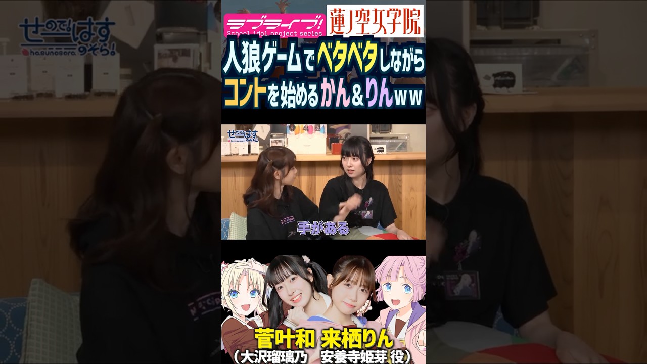 【蓮ノ空】人狼でベタベタしながらコントを始める菅叶和・来栖りん【Link! Like! ラブライブ!】#shorts リンクラ かんかん 声優 大沢瑠璃乃 安養寺姫芽 人狼ゲーム ボディタッチ お笑い