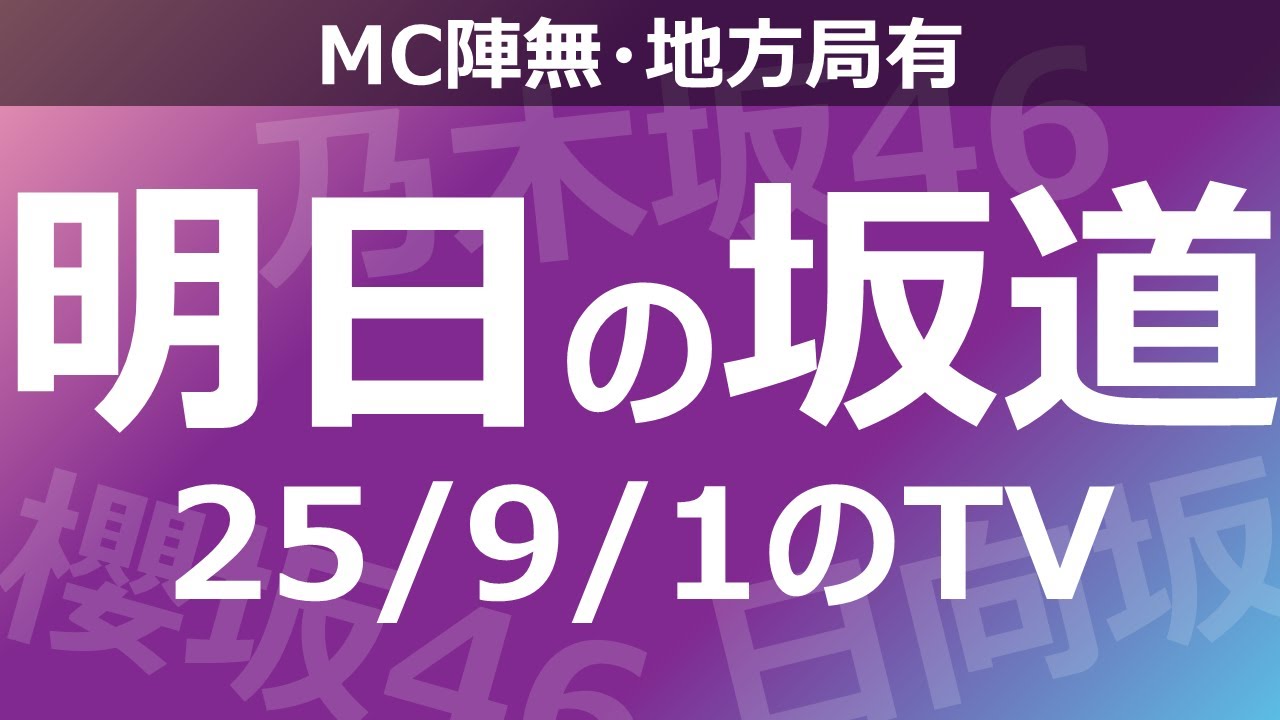 【明日の坂道】【全国】乃木坂櫻坂日向坂出演情報 2025/09/01 【番組出演】