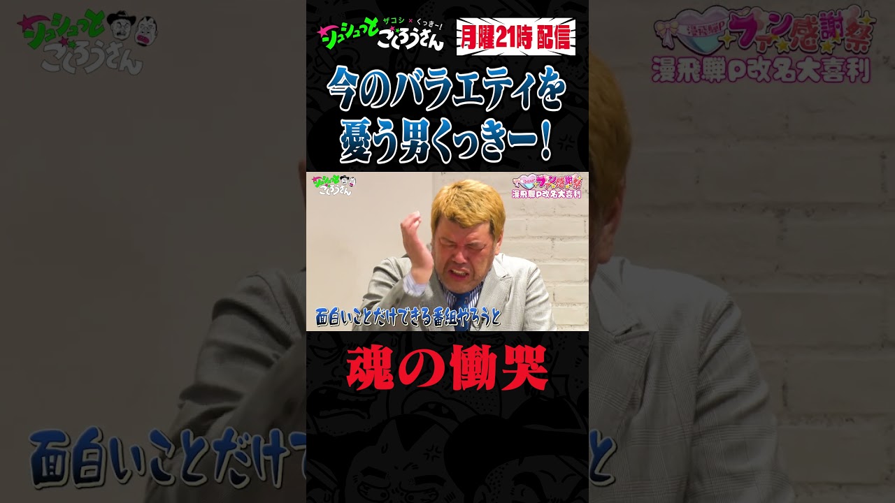何回泣くんやって もう 面白い。 え、 面白いことだけをやりたくていこ もう はい。 人々のクレームのこととか考えてみんな移縮して はい。はい。 好きなことてけへん。 バラエティやのに好きなことでけへんような はい。 時代が 今すごく来てると思って。 そうですよ。 だから僕と視長で 2 人でそんなん関係ない面白いことだけできる番組やろうと思ってやったら全ほとんどのチャンネルとんどのやつが収益化て誰でもいいです。スポンサーなってください。俺みこんなことなるやろ。 [拍手] 毎1 回嫁に言われる。また場から死に行くんだ でしょ。1 回言われる。やる意味あんのか?ただでやる意味あんのかっていう。