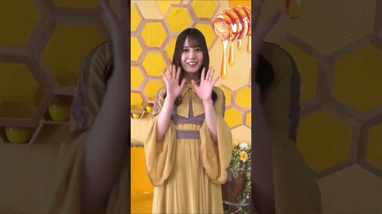 おの皆さん、こんにちは。日田坂46の 小坂おです。今回のひなこれはこんな感じ の蜂蜜みたいのセットで撮影していました 。いっぱい蜂蜜があったりとかすごく 甘そうな雰囲気で撮影しました。そして 今回すごく久しぶりにこんなに好きになっ ちゃっていいの衣装を着て撮影しました。 すごく楽しかったです。そして今回も 直入りグッズが当たるチャレンジく事を 実施しています。ひなこれ是非楽しんで ください。バイバイ。