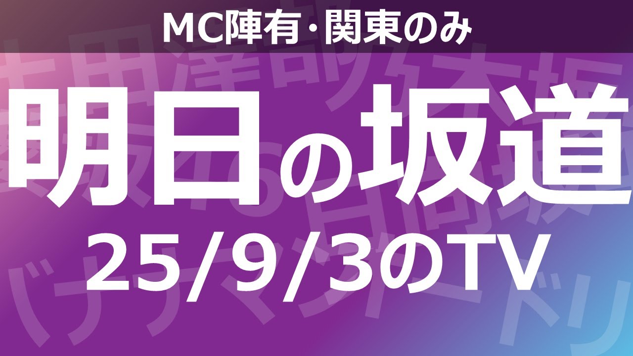 【明日の坂道】乃木坂櫻坂日向坂出演情報 2025/09/03 【番組出演】