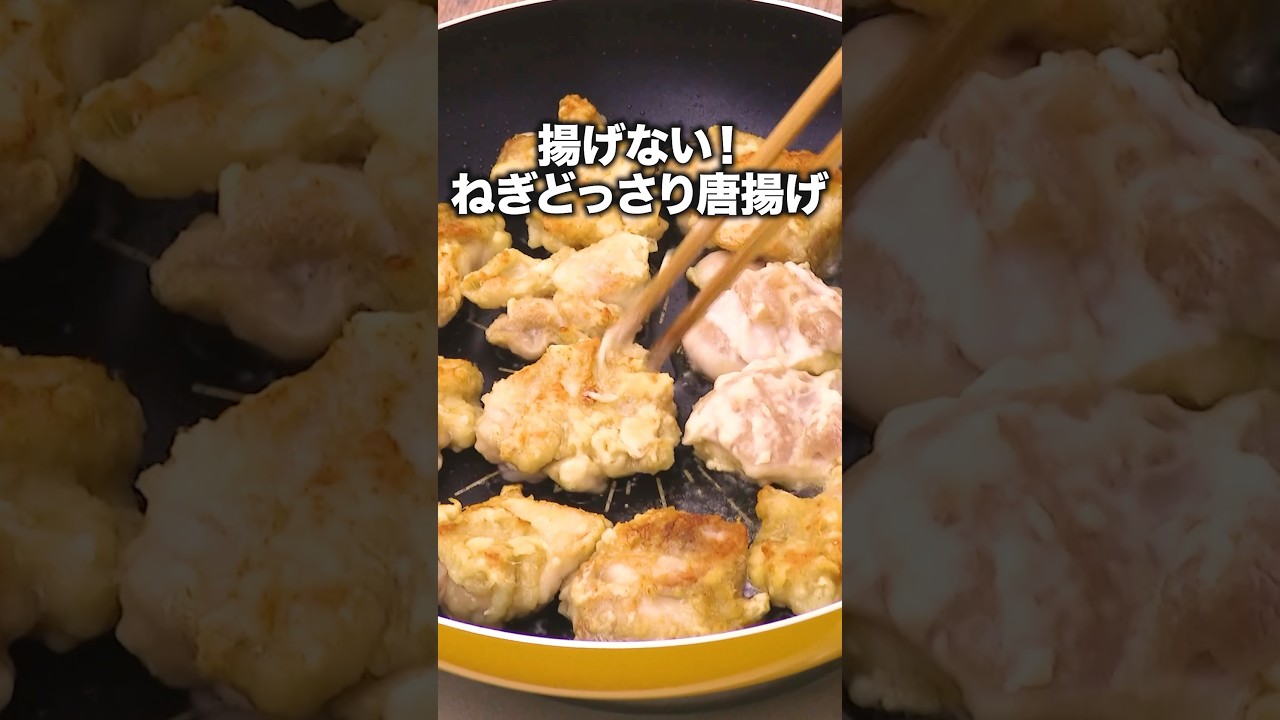 油処理はもうやめた少ない油でできるタレ が闇つきネギドっさり唐揚げまずはボール に酒塩醤油おろしニんニクおろし生姜を 混ぜておいてな染ませやすくする鶏も肉を 入れてもみもみがなくなるまで揉み込ん だら10分置いてキッチンペーパーで水気 を拭き取る。薄力粉大さじに片栗粉大さじ にを入れてよく混ぜたら焼いていくよ。 フライパンに油を入れて中火で熱したら 鶏肉を入れる。弱めの中火で焼いて上下を 返しながら7分ほど焼いて完成。次はタレ を作っていくよ。切ったネギに塩、ごま油 、水を入れてよく混ぜてネギ塩タレの完成 。唐揚げにたっぷりかけて、1度食べたら 絶対やみつきになる。食べたくなったら チャンネル登録して