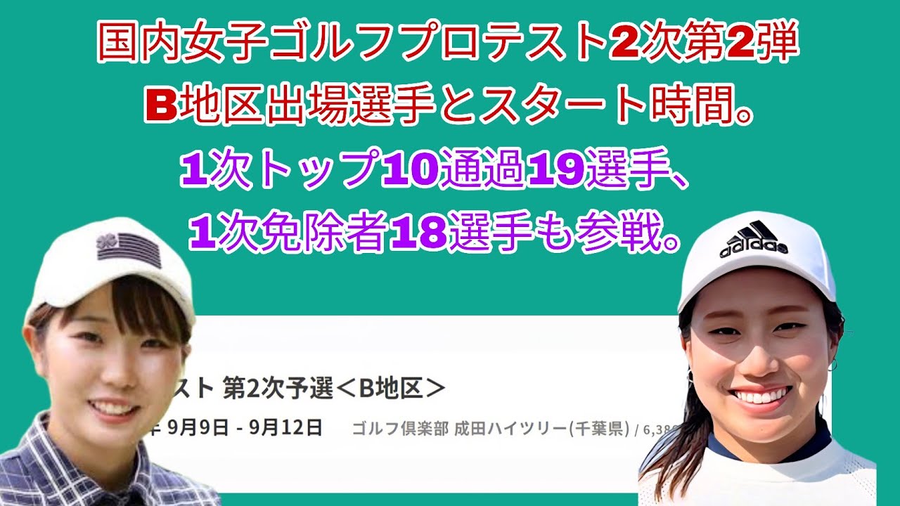 国内女子ゴルフプロテスト2次第2弾B地区の出場選手とスタート時間。1次トップ10通過19人、1次免除者18名も参戦。