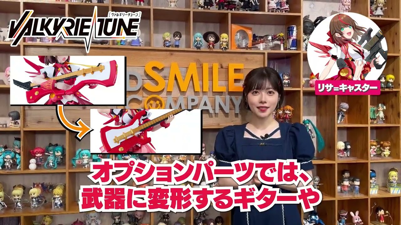 皆さん、こんにちは。リサキャスター役の イ部かかりかかりんです。え、本日ですね 、グッドスマイルカンパニーのオリジナル 美少女プラモデルシリーズ ヴァルキリーチーンよりリサキャスターの 予約受付が始まりました。 いや、いよいよですね。勢い重視のロック 大好き症状。オプションパーツでは武器に 変形するギターや複数の表情パーツが付い てくるので、是非ご予約ください。プラ モデルをね、まだ買ったことがないよって いう方にも手軽に手に取っていただける ような商品になっております。是非この 機会に予約してみてください。よろしくお 願いします。