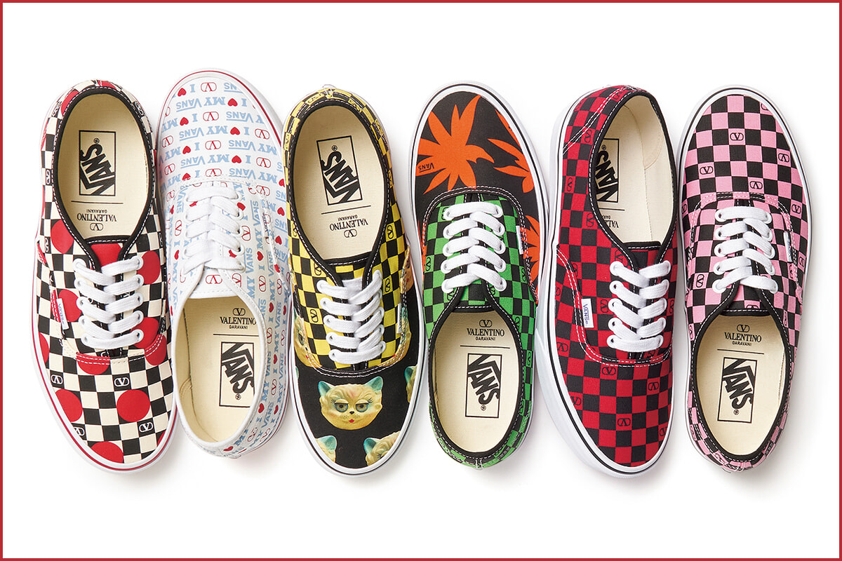 ヴァレンティノの25-26年秋冬コレクションにおいてメンズ・レディス両方のルックに登場し、話題となったコラボレーションスニーカー「ヴァレンティノ ガラヴァーニ アンド ヴァンズ」が、9月半ばより待望の発売。ヴァンズらしいクラシックなスケートスタイルに、メゾンのロゴマークを組み合わせたものや、いまやシンボル的な存在の”ル シャ デ ラ メゾン”が描かれたデザインなど、ポップなムード満載。