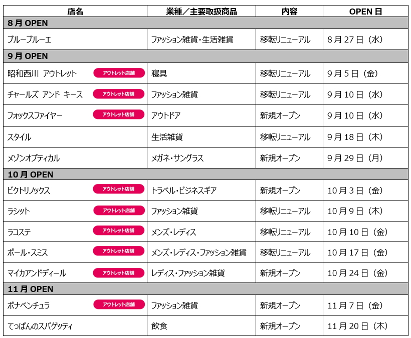 グランベリーパークは13店舗を新規オープン・移転リニューアルする