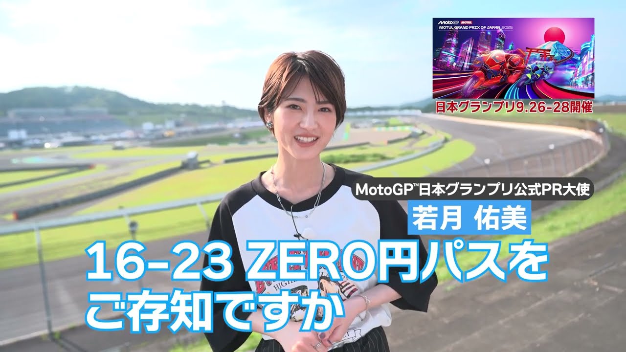 16歳~23歳の方限定!MotoGP™日本グランプリを無料で楽しめる 「16-23 ZERO円パス」。16-23 ZERO円パスで体験できる自由観戦エリアを、公式PR大使の若月佑美さんにご紹介いただきました。