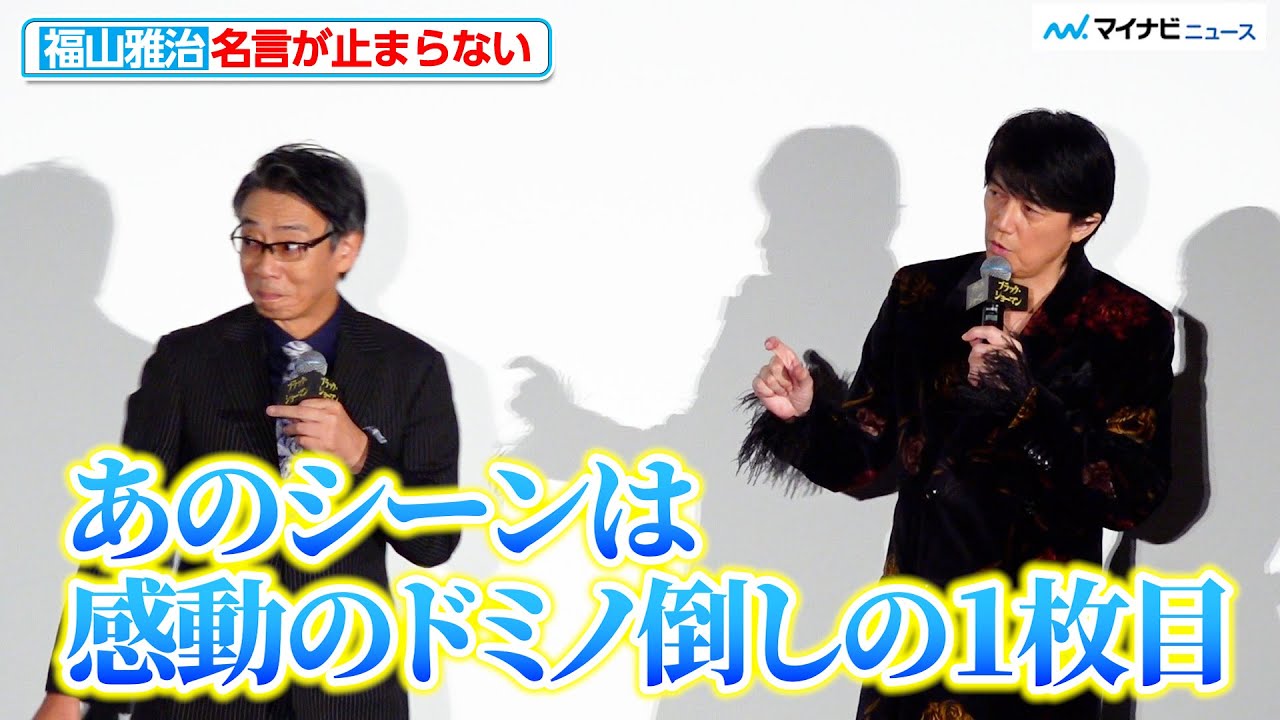 そうですね。 足元光ってたでしょ。なんか、 え、光ってる靴入ってんですか? ま、あの、光ってなかったとしても光って見えちゃう。 あの、ごめ、本人が光ってる可能性があるんだ。 1 番最初の感動のドミノ倒しの 1枚目になりたいわけですよ。 また出ましたよね、これ。名言ですね。出まし。 名です。 改めて大きなアクションお願いします。よろしくお願いします。 そして で、その先生もおっしゃってたんですけど、本作のその福山さんね、たけしとの丸でこうアクションの盾のようなマジックシーン そうですよ ね。東野先生も圧だったと。で、アドリブとかじゃなくてもこうやってこうまさに盾みたいにね、あのバチバチッと決めて福山さんと相談されながらシーンを作り上げてたと伺っております。 改めてその話が、 えっとまず、えっと、衣合わせが私もありまして、で、その時に、 えっと、まずマジックの練習をしますので、今日福山さん来られますと。で、私の衣装を決まってから福山さんがやっぱりあの 入ってこられて はい。 もう役の服じゃあ、あれ服ですか? あれおそらく私服ですね。あ、背中にこう手の形がついてる服でした。 覚えてないっすよ。 おらくそうだったと思います。そうだった。私服もすごいっすよ。 もうやなやっていう。 そうですね。 足元光ってたでしょ。なんか、 え、光ってる靴ですか? ま、あの、光ってなかったとしても光って見えちゃう。 あ、あの、ごめさ、本人が光ってる可能性があるんで。はい。 で、あの、ゴブ沙汰してますということで、あの、 さんもそうなんだて言、 それから2時間です。 マジックの、あ、そこから練習を、 ええ。やりまして。 で、ま、このこんな感じでやり 2時間ですよ。石合わせの日に はい。はい。 で、初日があの、あのね、皆さんご覧になったと思うんですけども、僕が色々とこうやられちゃうっていうか、あ、そっから始まったんです。 あの、警察書とか色々やったんですけどはい。 見終わって はい。 これ映画ですよね。 はい。 CGでなんとかなったんじゃないかなと。 あれ? いや、もう本当に はい。はい。はい。 だってわざわざやることないじゃないですか、あれ。 本当に僕色々もうやられたんすよ。で、本当にびっくりする上手にもうなられてるんですけど はい。 あんなのさ いやいやいや、あんなをさ、ちょ、 カットできるわけじゃないですか?ちょ、ちょ、 それを本気でやったのはい 大変だったでしょ? まず でもやっぱりね、 あの はい。 ナ瀬さんのこの怒りがどこに着地するのかちょ分からず話しますけれども はい。 でもやっぱりその 何が感動するかって本当にその時そこで起こってることもちろもちろん うん。ま、 僕はま、生瀬さんよりちょっと後輩になりますけど、こう長年やってますから はい。 現場現場見てますけれども はい。 はい。はい。 やっぱりこう 1番最初の感動のドミノ 1枚目になりたいわけですよ。 また出ましたよね。これ名出ましたね、これね。はいはいはい。 ドミノダウの今1 枚目にはいはいはいはい。 1 枚目。それを はい。 生み出す。 そのためにはやっぱり ナ瀬さんと僕空で初日のあの撮影のあそこで僕らもそうだし はい。 あの、撮影のスタッフの皆さんもそうだし、キャストの皆さんもそうだし、 本当にやってんだ。 本当に消えた。また入ったみたいな。 これ嘘じゃないんだ。 やってるふりじゃないんだっていう。 やってるふりじゃなくて本当に取ってんすよ。 本当すられてるわけ。 全部ああ、 全部僕がやる間にこっちから取られてってのを はい。そうなんです。 やってるんですよ。 それがまさに1 枚目になってるってドミノだ。 そう。 で、それを生み出すためにはやっぱり僕もあのプロじゃないしね。本当のプロじゃない。あ、 3りじゃないから。 はい。ま、ま、ま、そうですね。それそう、 あの、本当の3 だったらね、ちょっとあれですけどね。 はい。はい。そんなことはね、 ある種本当にアクションなんすよ。ま、こう、こうやったらこうね、受けて、 あの、こ、こっちはコンプたとこにちょっとこう、 あ、実践してた。あ、そう。あ、 で、またこうやって自分の方にこう向いてみたいな。で、全部全部あれ決まってるんですよね。 で、セリフのタイミングから何か全部決まってるんです。 です。決まってるっていうか、それを追求していくんですけど、あの、一言も間違わない。 だからあれは仕掛けてる僕だけじゃなくってやっぱ受ける方もすごい重要で同じように重要なんです。あれアクションですから。 はい。はい。 もうそこから入れたんで現場の式がぐっ上がってだ。 生瀬さんはそのなんですか?えっと 2時間リハーサルの時に 2時間か一緒合わせで 15分って聞いてたのに2 時間かかったじゃないかということにおります。 違い違う。その言い方はよくない。 だからまあ言えば福山さんがこれさ CG とかそういうので処理ってできるよねっていう提案をしなかったわけで
