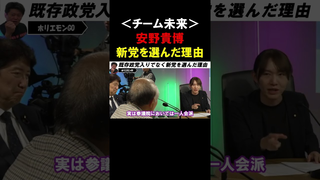 【ホリエモン】チーム未来「安野貴博」の政党選択!なぜ既存政党ではなく新党の立ち上げを選んだのか?【堀江貴文 安野貴博 切り抜き】