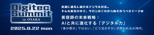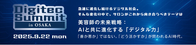 株式会社ミラビス(本社:広島県福山市)は、美容業界の未来を担う美容師・経営者に向けた特別セミナー 「Digitec Summit in OSAKA」 を、2025年9月22日(月)に大阪市福島区のOSAKA STUDIOにて開催いたします。