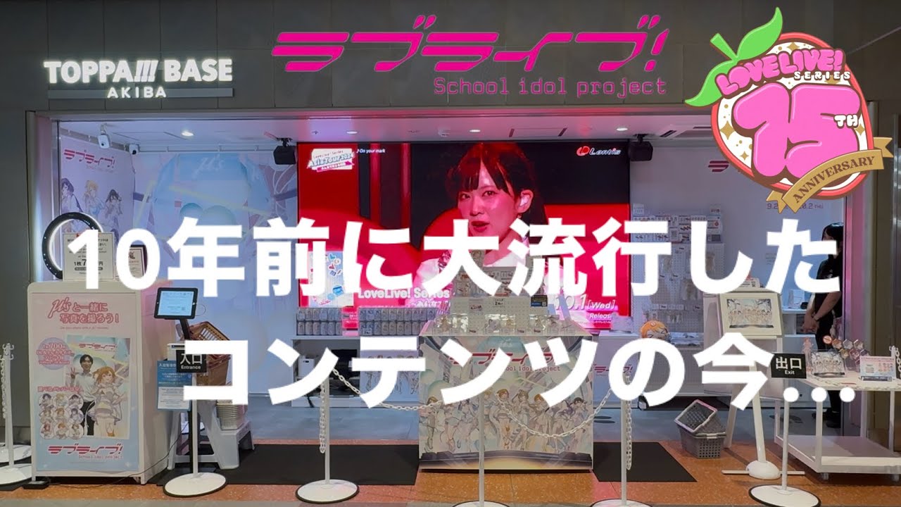 ラブライブ15 周年ミュージックフォーイン秋葉京都秋葉原駅内にラブライブニューズのあった。このように推しと一緒に写真が撮れる。写真の人水溜まりボンドのタに出てる。後で秋葉原 [音楽] スクールドルシアターのサネージ。ここにもミューズが映し出されていることちゃんの誕生日の翌日に撮影した。ミューズは [音楽] 9人。こう考えると今のラブライブ シリーズのグループがいかに人数が インフレしたかが分かる。今現役で活動し ているグループではハの空以外は全員9人 以上いるからね。スパスタのアニメで クーくちゃんが9人が神聖だとかなんとか 言ってたような。ゲーマーズ秋葉原の壁面 にあるラブカの広告。ほのかちゃんが万歳 しててダイナミック。ここは秋葉原の小野 に入ったところにある場所。ラブ化が色々 と展示されている。これ見ているラブ ライバーの皆さん、あなたはラブ会やって ますか?僕はカードゲームというものに あんま興味ないからやってないんだよね。 ラブかやってるかどうかコメント欄で教え て欲しいな。ラブ化やるくらいならそのお 金を旅行費とかラブライブのライブ代に 使いたいなと思っている人間だから ミューズのカードもある。僕が大好きな 綾瀬エリのビキニ姿のカードがあったら 速攻で買うんだけどな。うん。やってない からこういうの見ても本当にわからない。 おの建物の4階ミューズのグッズがずらり と並んでいる。この映像はワンダフル ラッシュ。こりちゃんの誕生日だから流し てるんだね。のぞみのTシャツ発見。2個 のTシャツも発見。エリだけどこ探しても 見つからなかった。今グッズが置いてあっ た場所の真反対にキメイドカフェがある。 ここでバイトしていることちゃんがお 出迎え、中に入ってみよう。ここは カウンターの前のキュアメイドカフェの グッズが売っている場所。こりちゃんの 声優の内田あやさんのサイン。 可愛いグッズが置かれている。 こり家の誕生日を祝うイラストも置かれて いる。ここからは店内動画撮影禁止だから 写真で紹介。ニコちゃんだ。2014年の イラストらしい。 あ、このイラストも見たことあんな。 ストームインラバーだ。 2011年のキュアメイドカフェの イメージ投票だって。この花もすごい昔感 あるイラストだね。 さっきの等身台パネルのちゃん。これは 最近書かれた感がある。誕生日のこと ちゃんとミューズの3年生の大きな イラストがあった。これはテレビアニメで ここキュアメイドカフェりちゃんのバイト 先が出てきたシーンだ。確かタイトルは ワンダーゾーンだっけ? ほら、アニメの最後にここでワンダー ゾーンを歌ったんだよ。これ確かちゃんが みんなりンスキーだとバレないように ミューズのメンバーから逃げてたシーンだ 。お、僕の推しが右下に大きく映ってて 嬉しい。このアニメやってた頃のキュア メイドカフェフェってこの小になかったよ ね。確か秋葉原の駅からもっと離れた場所 にあった。えり結構多く映ってるな。 嬉しい。 席にはミューズのサニデイソングの イラストが飾られていた。座っているお客 さんが離れたのを見てそのタイミングで 写真を撮ってきた。カニデイソングは 2015年に公開された劇場版の曲だから 、今からもう10年前の曲になったのか。 なんかこのキュアメイドカフェの中の空間 だけ2025年という気がしない。時を 巻き戻した感じがする。写真では伝わら ないけど店内にはミューズの曲が流れて たり、大きなテレビがあって、そこに ミューズのアニメのPVが流れていた。今 もこういう空間を作ってくれていることに 感謝。 さて、メニューが届いたから夕飯にしよう 。ハンバーグライスの大盛。期間限定の コラボメニューのオムライスにしないの かって。昼間五等明のリリイベに参加して 、そこの昼飯でオムライス食べちゃったん だよ。だからコラボフードメニューは頼ま なかったけどコラボドリンクは頼んだ。 推しのエリのドリンクを頼んだ。エリジル 。美味しかったぜ。コラボメニューを頼ん だらついてくるカードうみちゃんだった。 ラブライブ全盛紀から10年ほど経った今 でも秋葉原はラブライブでこんなにも 賑わっていることが分かっ