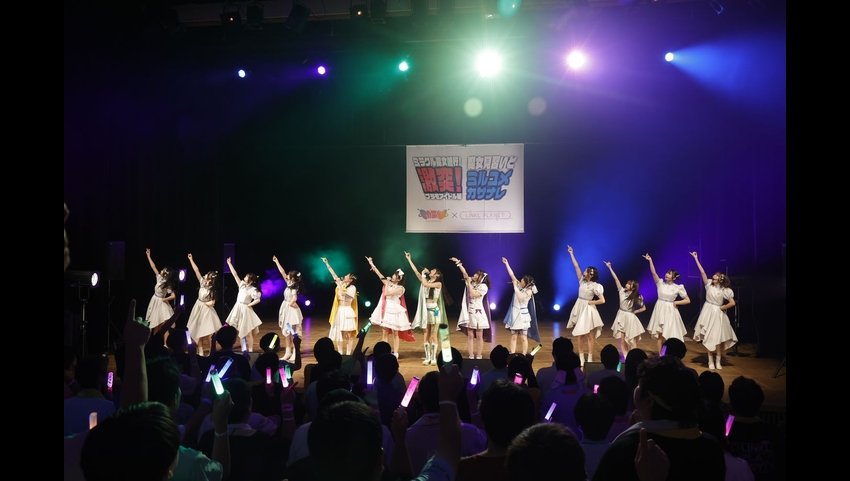 だが、せっかくのツーマンライブ、これで終わるわけにはいかない。前橋ウィッチーズを再びステージに召喚して13人のアイドルが揃うと、ダメ押しとばかりに、昼夜2公演合わせてこの日5回目となる「ヘリコプタオル」を全員で賑やかに披露。両グループのメンバーたちが混ざり合う立ち位置で、一緒に手でハートマークを作ったりと和気あいあいと盛り上がりながらフィニッシュ。グループやファンの垣根を越えて、理屈抜きで楽しめる空間を作り上げて、初のツーマンライブは大団円を迎えた。プラモ愛と前橋や作品への愛、それぞれの思いを胸に活動する両者の見る夢が重なり合う、両グループにとって実りある一日だったのではないだろうか。