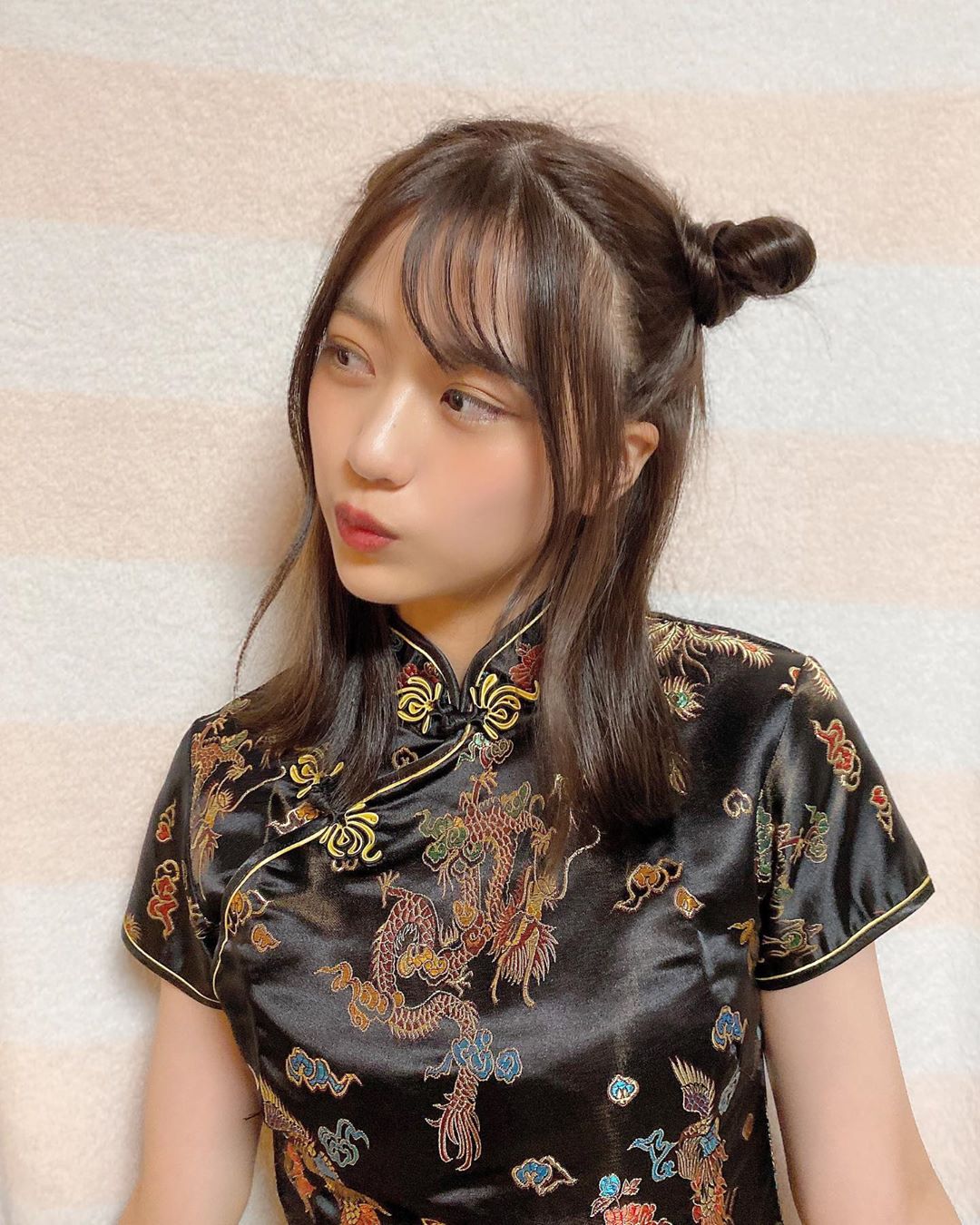 _ 今日オンラインファンミーティングで チャイナ服きました🎃 黒のチャイナ服って珍しい〜😺❤︎ そして恥ずかしい〜。😺笑 #チャイナ #コスプレ #ハロウィン #ayana_shinozakiakb48Ayana ShinozakiShinozaki Ayanaコスプレチャイナハロウィン篠崎彩奈