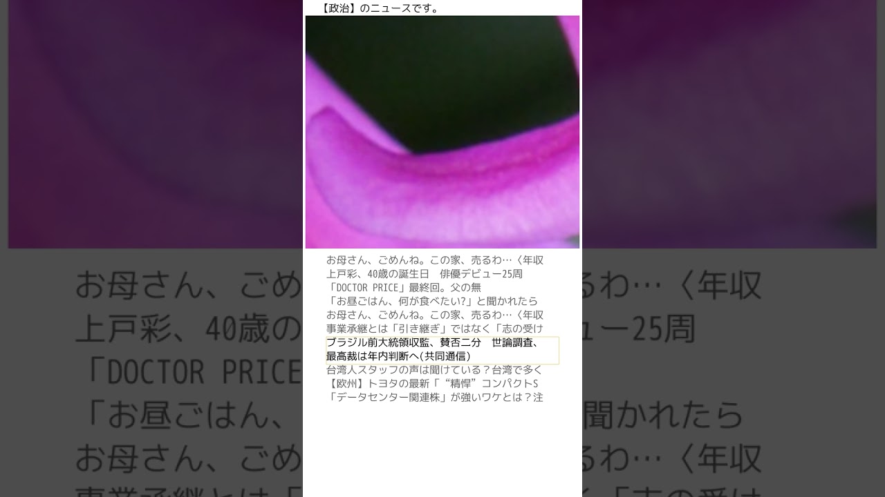 45歳のシングルマザーが年収380万円 という収入をもに苦十の決断を下し自宅を 売却することになりました。ローンの返済 負担が重く将来への不安から新たな生活を 模索する一方を踏み出している状況です。 ずっとピアに今週放送されるドラマDO CTORPIC の最終回では主人公な木と米長が最後の 戦いに望み主人公の父の無念を晴らすと いう展開が描かれます。テレビ ガイドウェブが詳細を報道しており、今後 の身主が期待されます。 簡単でいいよという言葉が夫に不快感を 与え、すれ違いを生むケースが見受けられ ます。45歳のシングルマザーが年収 380万円という状況化で苦重の決断を 下し、家族の家を売却することになりまし た。ローンの返済負担からの解放を目指す 決断ですが、今後の生活の影響も考慮し、 慎重な判断が必要となるでしょう。 証計の世代交代において単なる業務 引き継ぎではなく経営者の持つ空内への 思いを息子に伝えることが重要とされてい ます。ウェッジー。ウェッジーの記事では 死業の経営者が息子への思いの伝達に駆慮 するケースを紹介し、その解決策を探る 情報を提供しています。ブラジル全代領を 堀ボるソロ氏がクーデター計画などの罪で 近庫27年3月の判決を受けて習慣され ました。テ論調査では指示と反対意見が 分れている一方、最高裁は年内に判断を 下す見込みで裏ル政治に大きな影響を与え 続けるボルソナルの同行が注目されてい ます。台湾ではジョブホップが非常に一般 的で多くの人材がキャリアチェンジを 繰り返しています。この記事ではその背景 にある台湾のビジネス環境や台湾人 スタッフの声を分析し、海外進出を目指す 企業にとって重要な資唆を得られる内容 です。C、HR+を2025年3月より 発表しました。高性能な仕様では340 馬力を超えるパワフルなモデルも登場し、 全長4.5m級というや大きめのサイズと なっています。 データセンター関連株が注目を集めている 背景にはクラウドコンピューティングや AIの普及によるデータ需要の増加が上げ られます。この動きを受け本事ではその 19銘柄について詳しく分析し、投資の 参考にさせていただきます。 M