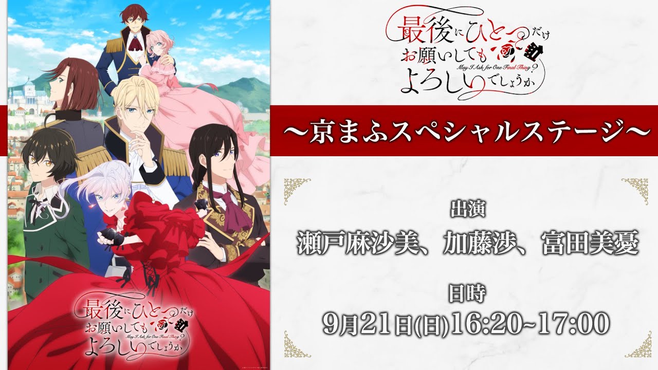 【生配信】TVアニメ『最後にひとつだけお願いしてもよろしいでしょうか』京まふステージ|9月21日(日)16:20~17:00