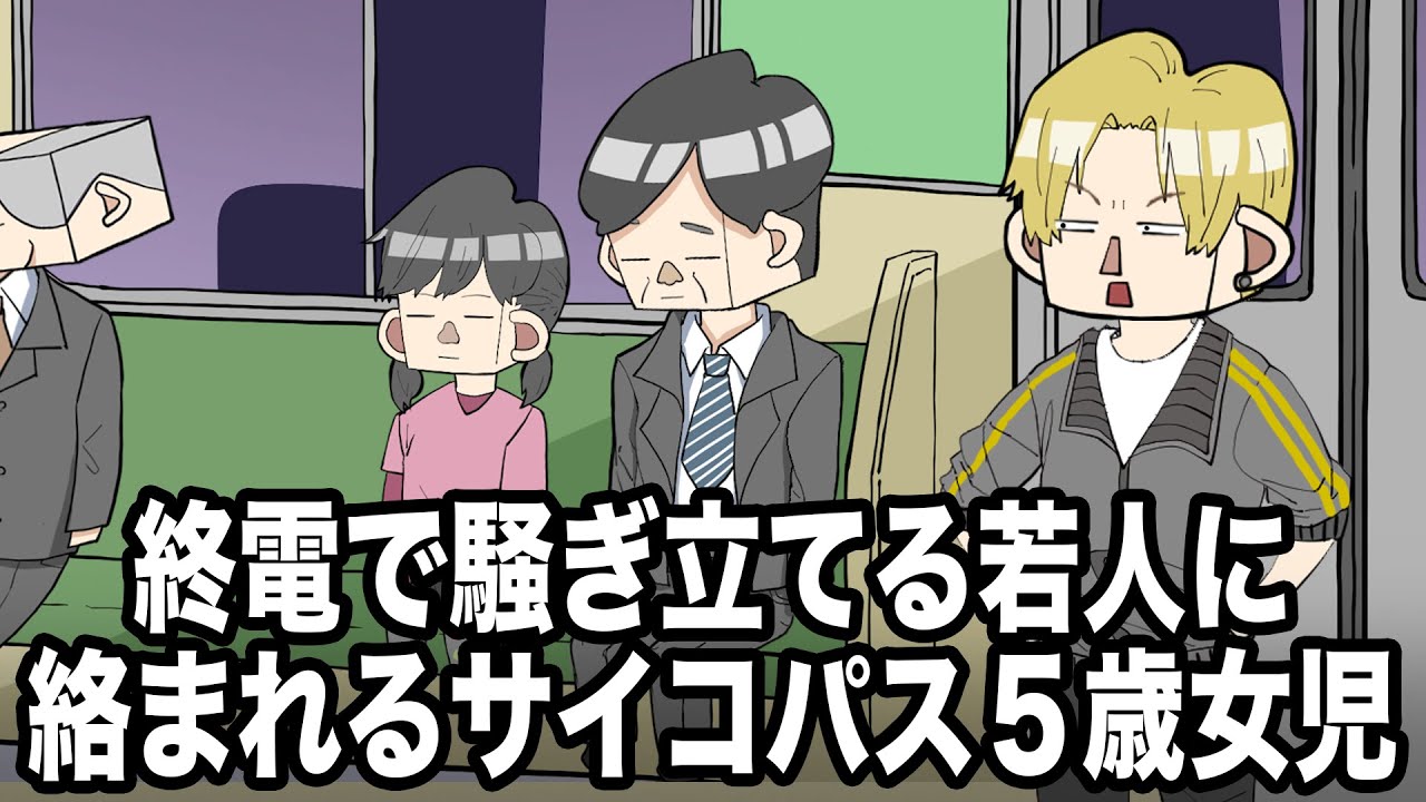 終電で騒ぎ立てる若人に絡まれるサイコパス5歳女児【アニメ】