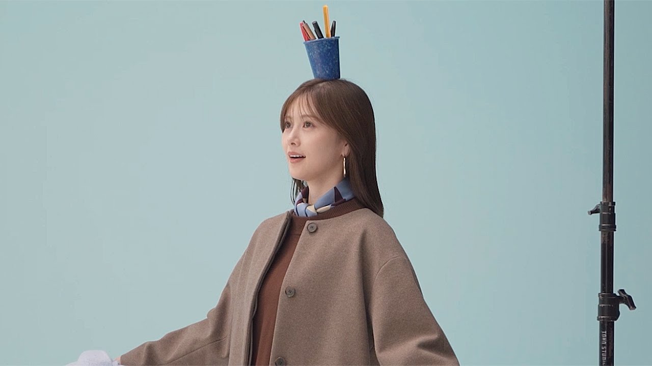【イッキ見】白石麻衣、頭にペン立て乗せる!? 「珍しいシュールなポージング」にも挑戦 スーツスクエア新CM+メーキング+インタビュー