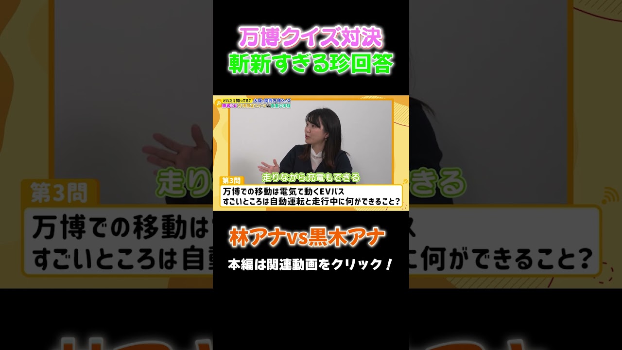 【万博クイズ】林アナと黒木アナのガチ対決で珍回答! #アナウンサー #万博 #大阪関西万博 #expo #林アナ #黒木アナ #立田アナ #クイズ #quiz #ev #読売テレビ #evバス