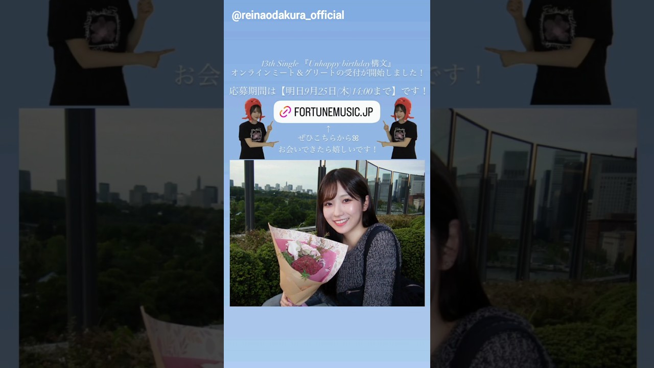 小田倉麗奈 れいなちゃんからミーグリのお知らせ!1次受付締切明日9月25日14時まで!Instagram 櫻坂46