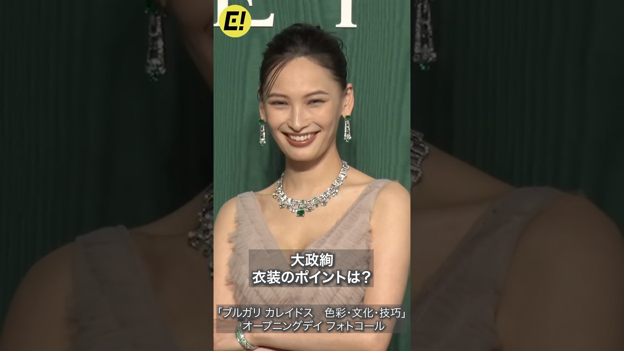 「ブルガリ カレイドス 色彩・文化・技巧」 オープニングデイ フォトコールが2025年9月16日に都内で行われ、大政絢が胸元がザックリ開いたゴージャスなドレスに豪華ジュエリーを身につけ登場した。