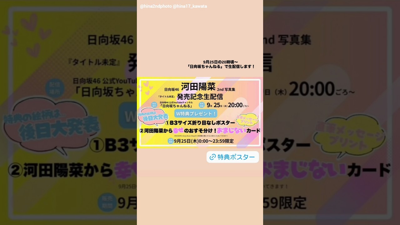 河田陽菜 写真集発売まで50日切りました!明日9月25日日向坂ちゃんねるにて写真集発売生配信があります!2nd写真集 11月11日発売!
