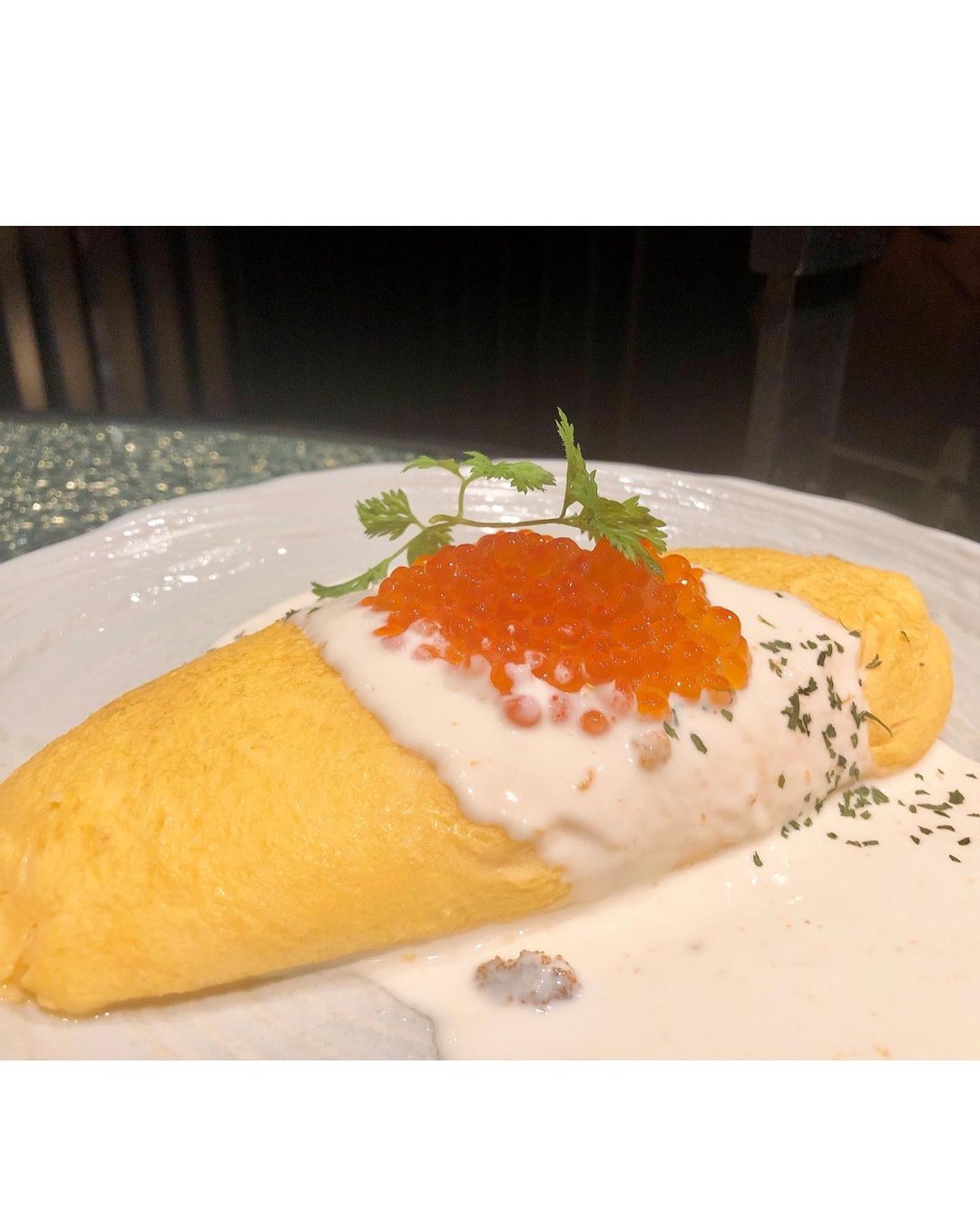 ウニクリームソースのイクラのせオムレツ
