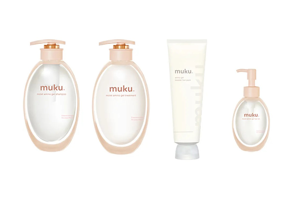IUSがローンチする「ムク(MUKU+)」のジェルヘアケアシリーズは、植物ジェル処方、1.3兆個の植物リポソーム配合、浮遊型エコボトルの3つの世界初を集結させた髪への密着度と保水持続度を高め、新しい触感と使用感を実現した。