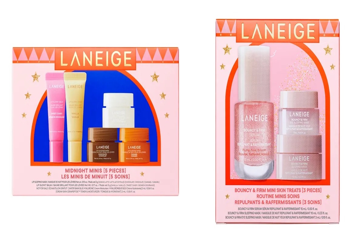「ラネージュ(LANEIGE)」のコフレは、“リップスリーピングマスク ミッドナイトミニズ N”のリップマスク3種と、2種のリップバーム、“クリームスキン ローション”、“ウォーターバンク モイスチャークリーム”をセットする。
